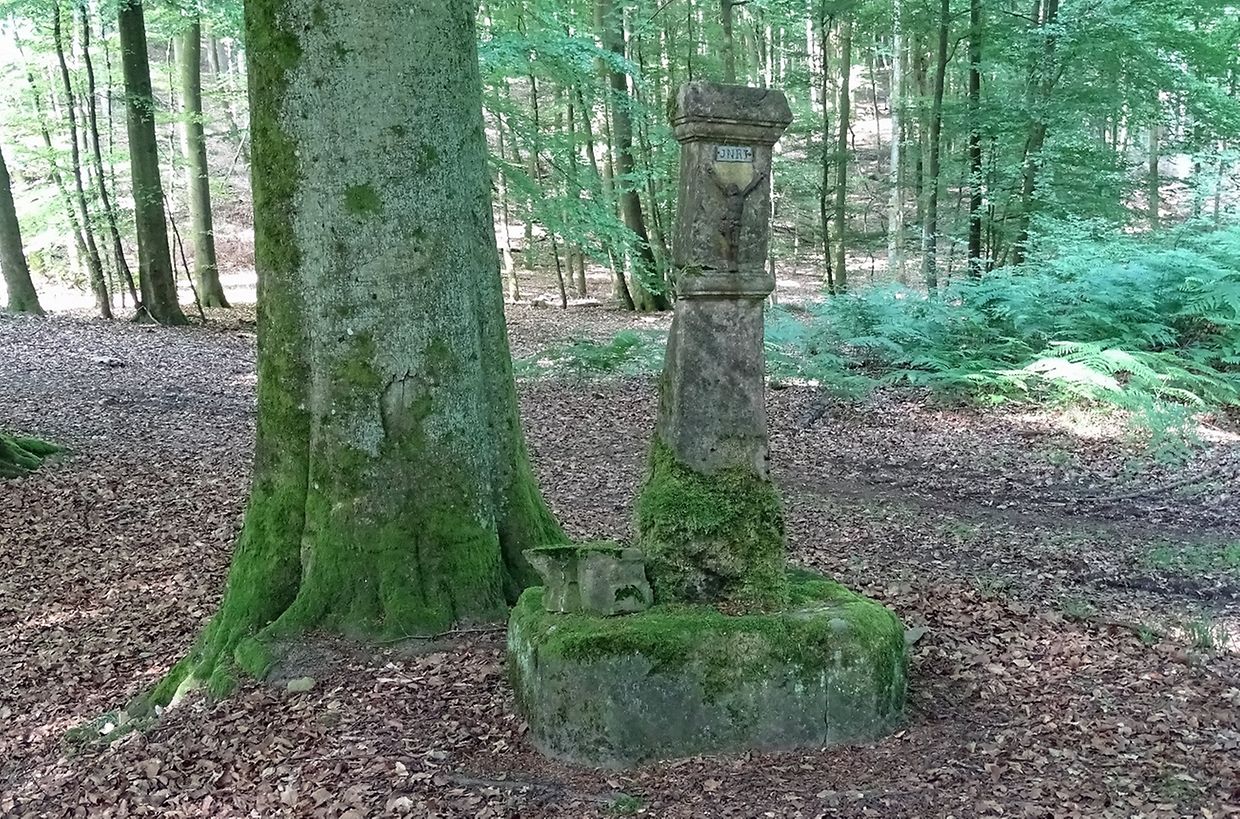 Laut Informationstafel: Vermutlich hat das "Biirgerkräiz" etwas mit dem Schloß Bourglinster zu tun. Die Bewohner der Ortschaft Bourglinster wurden einst als "Biirger" bezeichnet. Möglicherweise hat das "Biirgerkräiz" dem Schloßherrn von Bourglinster als Gerichtskreuz gedient. Vielleicht aber stellt es auch ein religiöses Wahrzeichen dar, das von der Pfarrei Bourglinster errichtet wurde.