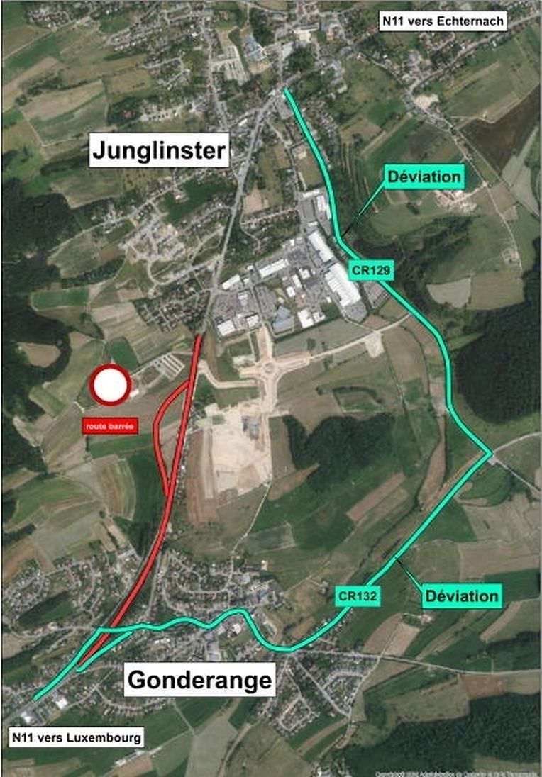Der Grund: Die Hauptverkehrsstraße N11 zwischen Junglinster und Gonderingen wird ab kommendem Montag, den 15. Oktober, bis voraussichtlich Samstag, den 20. Oktober, vollständig für den Verkehr gesperrt. Die Umleitung führt während dieser Zeit durch die Ortschaft Gonderingen und die Kreuzung Weimerich.
