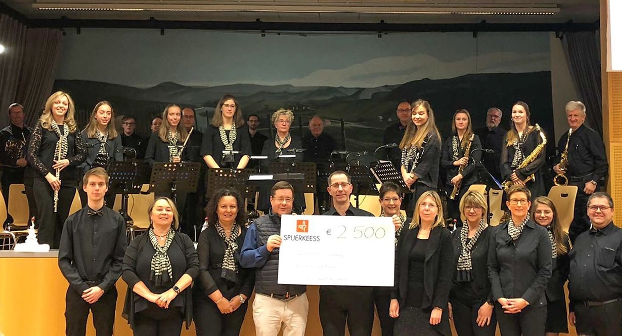 An der Paus huet d’Fanfare Gouschteng-Beyren e Scheck an Héicht vun 2.500 Euro un d’ONG Kindernothilfe Luxembourg iwwerreecht. Den Direkter vun der ONG Patrick Reinert huet dësen entgéintgeholl. Hien huet d’ONG déi zanter 10 Joer zu Lëtzebuerg besteet kuerz virgestallt an huet erkläert wéi d’Suen agesat ginn. Et handelt sech em e Projet am Norde vum Malawi, deen a 40 Gemengen den Zougang zu propperem Drénkwaasser duerch 20 nei Buerlächer verbessert. Des weidere gi sanitär Ariichtungen a 26 Schoulen gebaut. De Projet erreecht insgesamt 60.000 Leit, dovun 33.000 Kanner, déi dank verbesserter Hygiène gesond opwuesse kënnen.