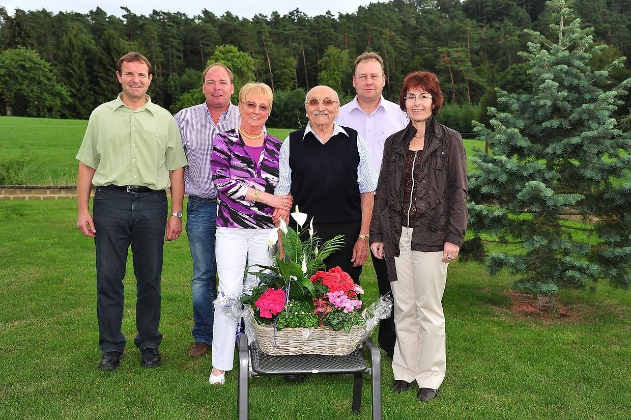 Neulich beglückwünschte Bürgermeisterin Anny Thillen in Begleitung ihrer beiden Schöffen Nico Brück und Paul Mangen sowie Rat Romain Mersch, Jean Gengler auf dem Grevenknapp ( Böwingen/ Attert) zu seinem 85. Wiegenfest. Jean Gengler erblickte das Licht der Welt am 11. Juli 1926 in Paris. Am 1. Oktober 1955 führte er Hilda Ries zum Traualtar. Aus ihrer Ehe gingen zwei Söhne und eine Tochter hervor. Heute freut sich Großvater Jean auf vier Enkelkinder. SEine berufliche Laufbahn begann der Jubilar am 14. Juni 1951 beim Reifenhersteller Goodyear in Colmar- Berg, wo er nach 42 Jahren Aktivität als Produktionsleiter in den Ruhestand trat. Nach dem Tode seiner Gattin im Jahre 1993 lebt Jean Gengler gemeinsam mit seiner Lebensgefährtin Danielle Koenigsberg in seinem Wohnhaus auf dem Grevenknapp. Jean Gengler, langjähriger aktiver Sänger im „ Männerkouer Béiwen/ Atert“, leitete denselben während 40 Jahren als Dirigent und war ebenso ein begeisterter Orgelspieler. Über das schöne Blumenarrangement das dem Jubilar zum Ehrentag überreicht wurden, freute sich Jean Gengler aber ganz besonders. ( FOTOS: CHARLES REISER)