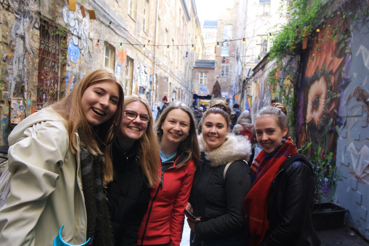 Am frühen Samstagmorgen trafen wir uns vor der Schule, um mit Bus und Bahn nach Berlin zu fahren. Nach langen acht Stunden kamen wir in der deutschen Hauptstadt an, checkten im Hostel ein und erkundeten gemeinsam die Umgebung um den Hackeschen Markt. Ein gemeinsames Abendessen schloss diesen ersten Tag ab.