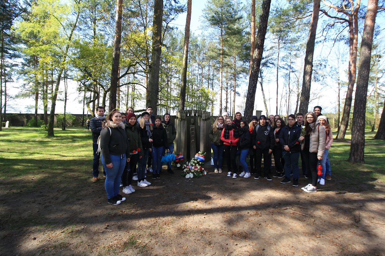 Am Sonntag brachen wir bereits früh nach Sachsenhausen auf, wo wir zuerst eine interessante Führung durch das ehemalige Konzentrationslager erhielten. Anschließend konnten wir uns in den verschiedenen Ausstellungen ein persönliches Bild über die grausame Zeit und das Leiden der Menschen im Lager Sachsenhausen/Oranienburg machen. Um 14h00 beteiligten wir uns dann aktiv an der 72. Gedenkfeier für die luxemburgischen Opfer dieses Lagers. Wir trugen zwei selbstverfasste Texte und das Lied „Fir ons Welt“, welches wir auch bereits bei der Verlegung der Stolpersteine in Grevenmacher sangen. Sonntag Abend stand dann noch eine typische Berliner Sightseeing-Tour auf dem Programm, d.h. Brandenburger Tor, Bundestaggebäude, Gendarmenmarkt, usw.