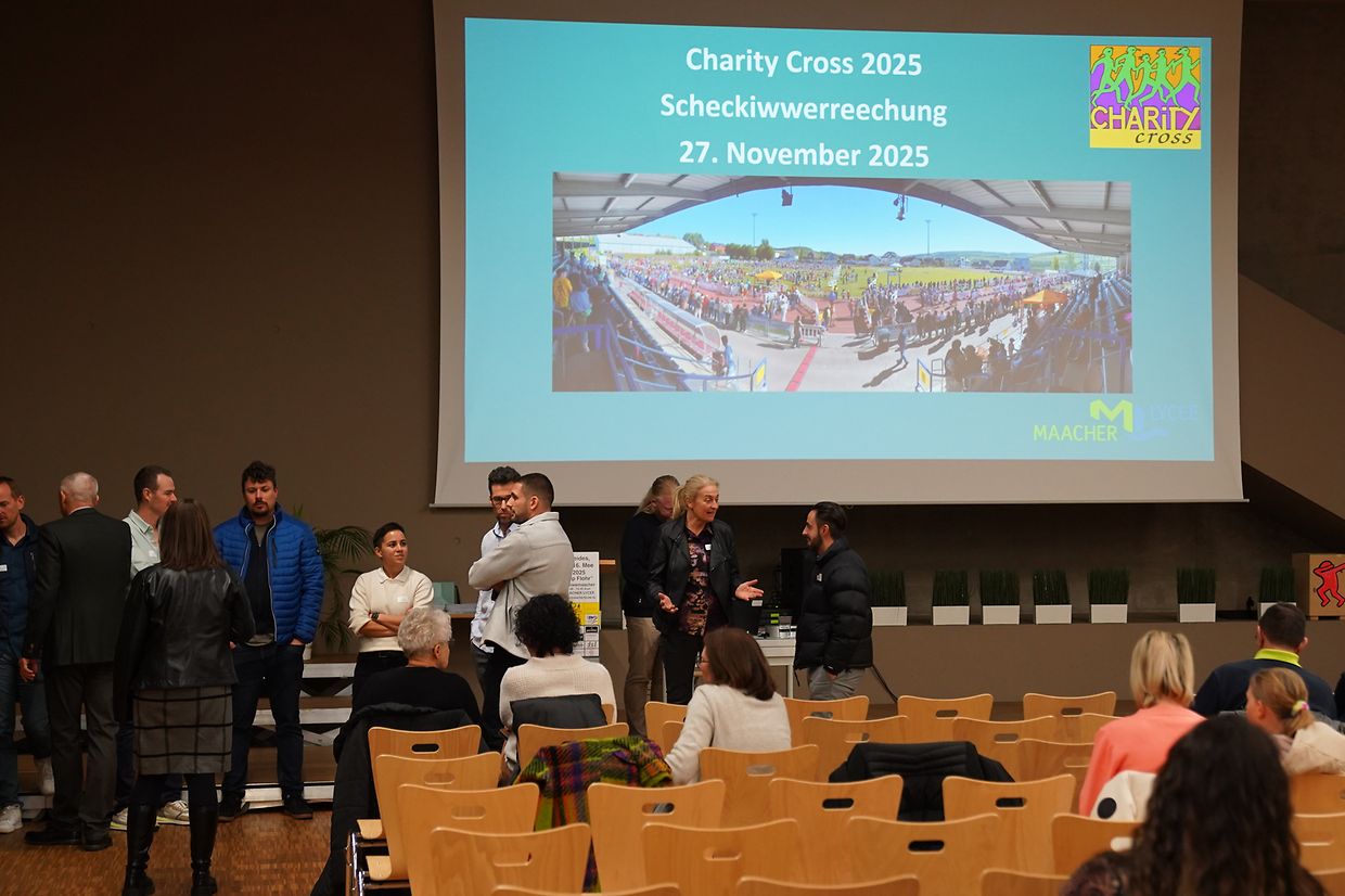 Am Donnerstag, den 27. November 2025, um 18:30 Uhr fand im Festsaal des Maacher Lycée die feierliche Schecküberreichung zum 22. Charity Cross statt. Die Veranstaltung bildete den festlichen Abschluss eines sportlichen Highlights, das mit 232.222 Euro erneut eine beeindruckende Spendensumme erzielte – ein Beweis für die enorme Solidarität der Schulgemeinschaft sowie zahlreicher Unterstützerinnen und Unterstützer.