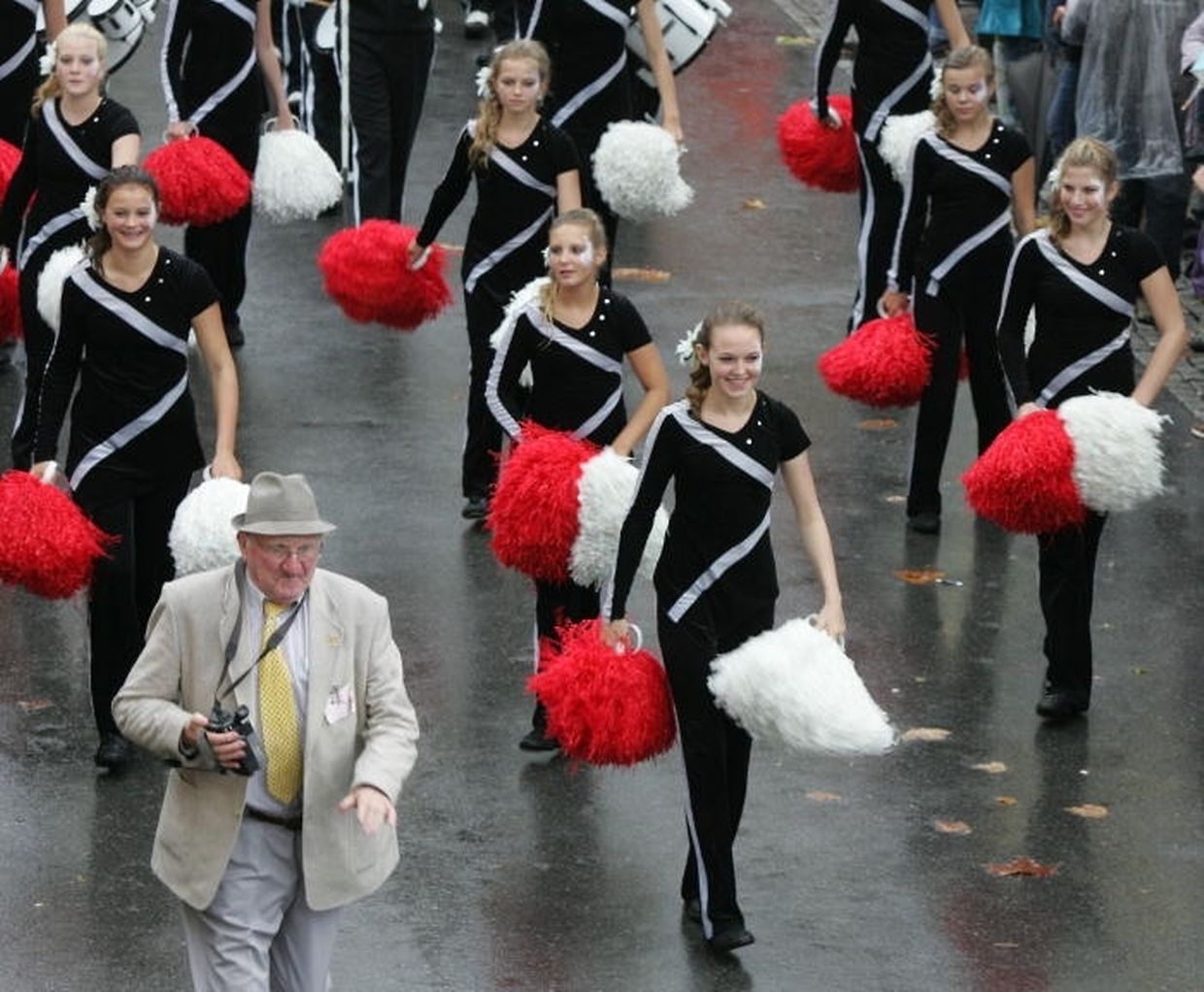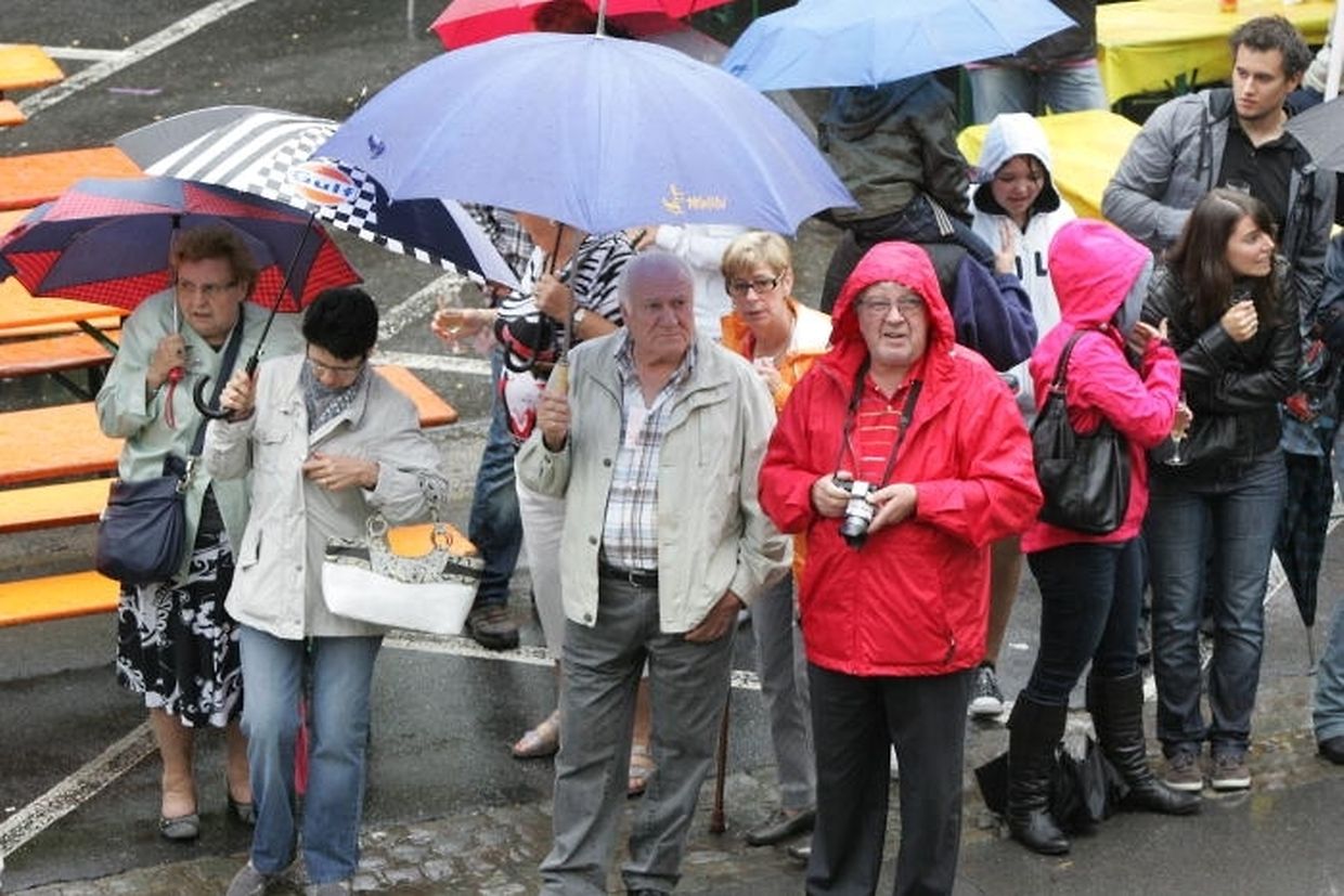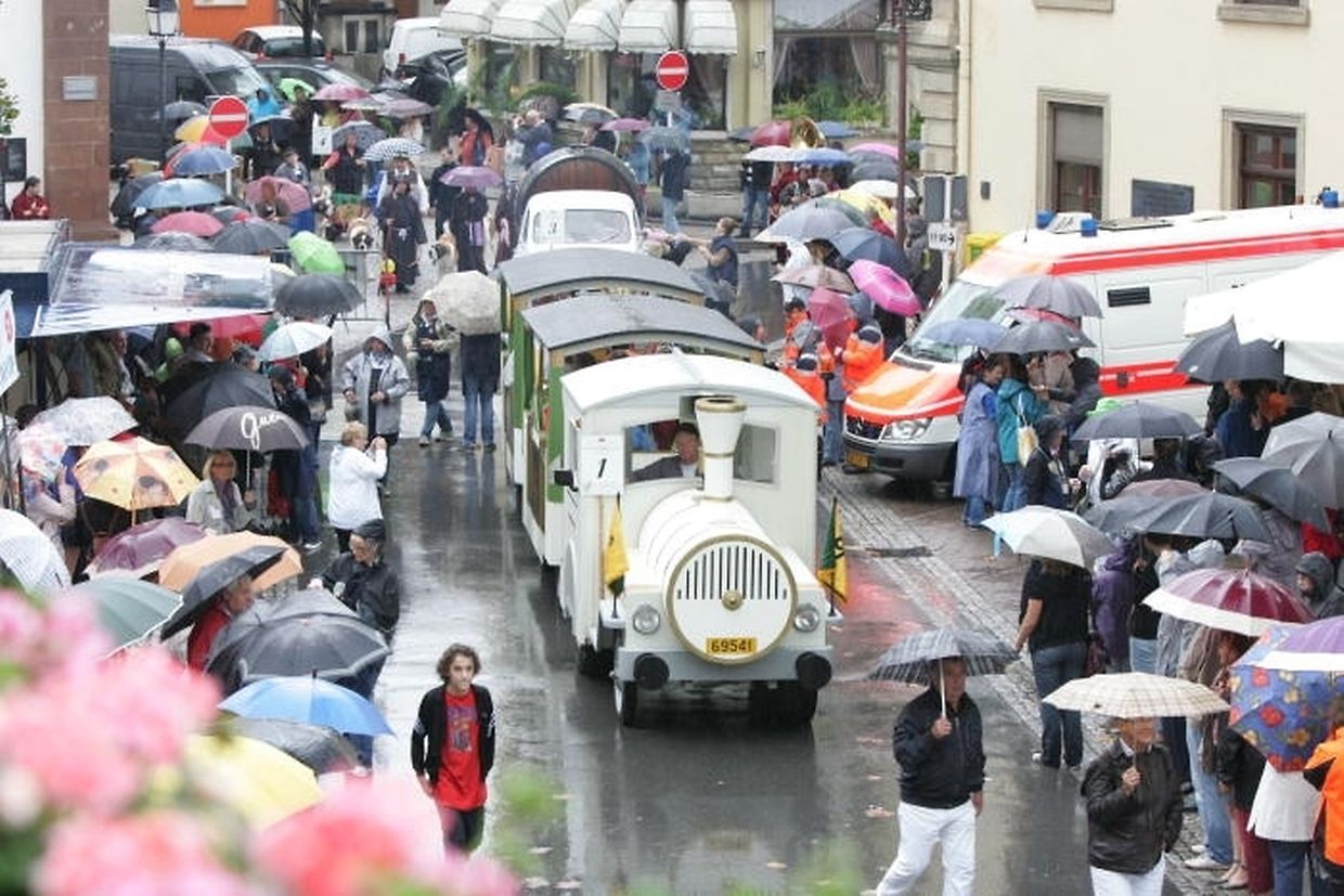 Wenig Einsehen mit den Weinfreunden hatte Wettergott Petrus allerdings gestern. Obwohl es teilweise mehr oder weniger heftig regnete, tat dies der Stimmung keinen Abbruch. Dennoch ließen sich wiederum tausende Besucher den traditionellen Umzug mit 42 Festwagen, Folkloregruppen und Musikvereinen nicht entgehen.