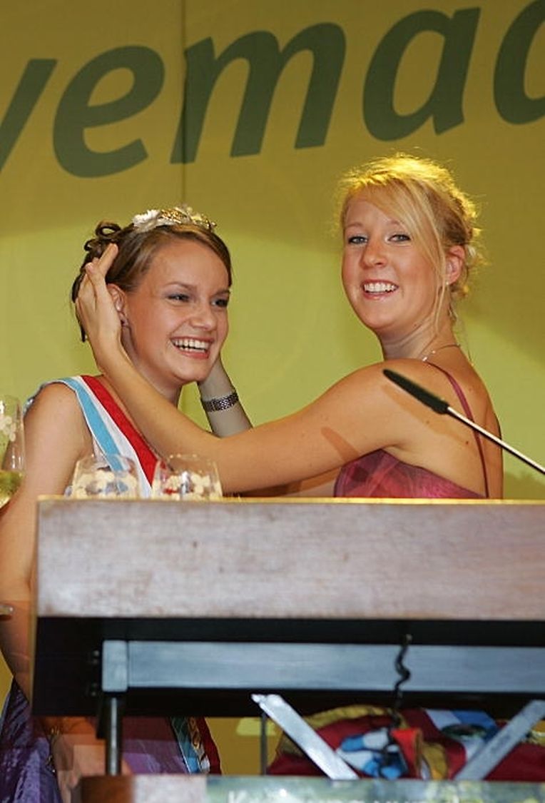 Kurz vor 23 Uhr kam aber der lang ersehnte Moment: Während die Grevenmacher Stadtmusik „Kättche, Kättchen“ spielte, traten die amtierende Weinkönigin Alexandra, ihre Nachfolgerin Anne sowie die vier Prinzessinnen auf die Bühne. Bereits im Vorfeld hatte Léon Gloden, Präsident des „Comité des fêtes“, sich bei Alexandra für deren Einsatz im In- und Ausland bedankt.