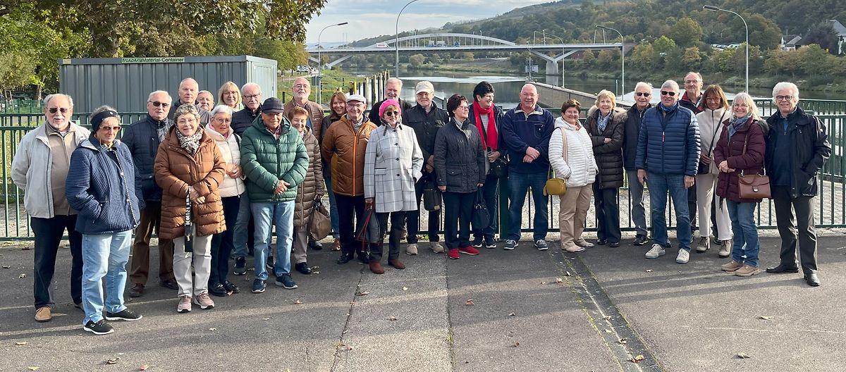 De Grupp vun 30 Leit huet missen an 2 opgedeelt ginn, well et an de Galerien déi ënnert der Musel erduerch ginn zimmlech enk war. Et war och derwäert fir déi vill Treppeléken erof an erëm erop ze goen fir esou en eemolegen Abléck an d’Banneliewe vun den Infrastrukturen ze kréien, deenen een hir bal 60 Joer net ugesäit.