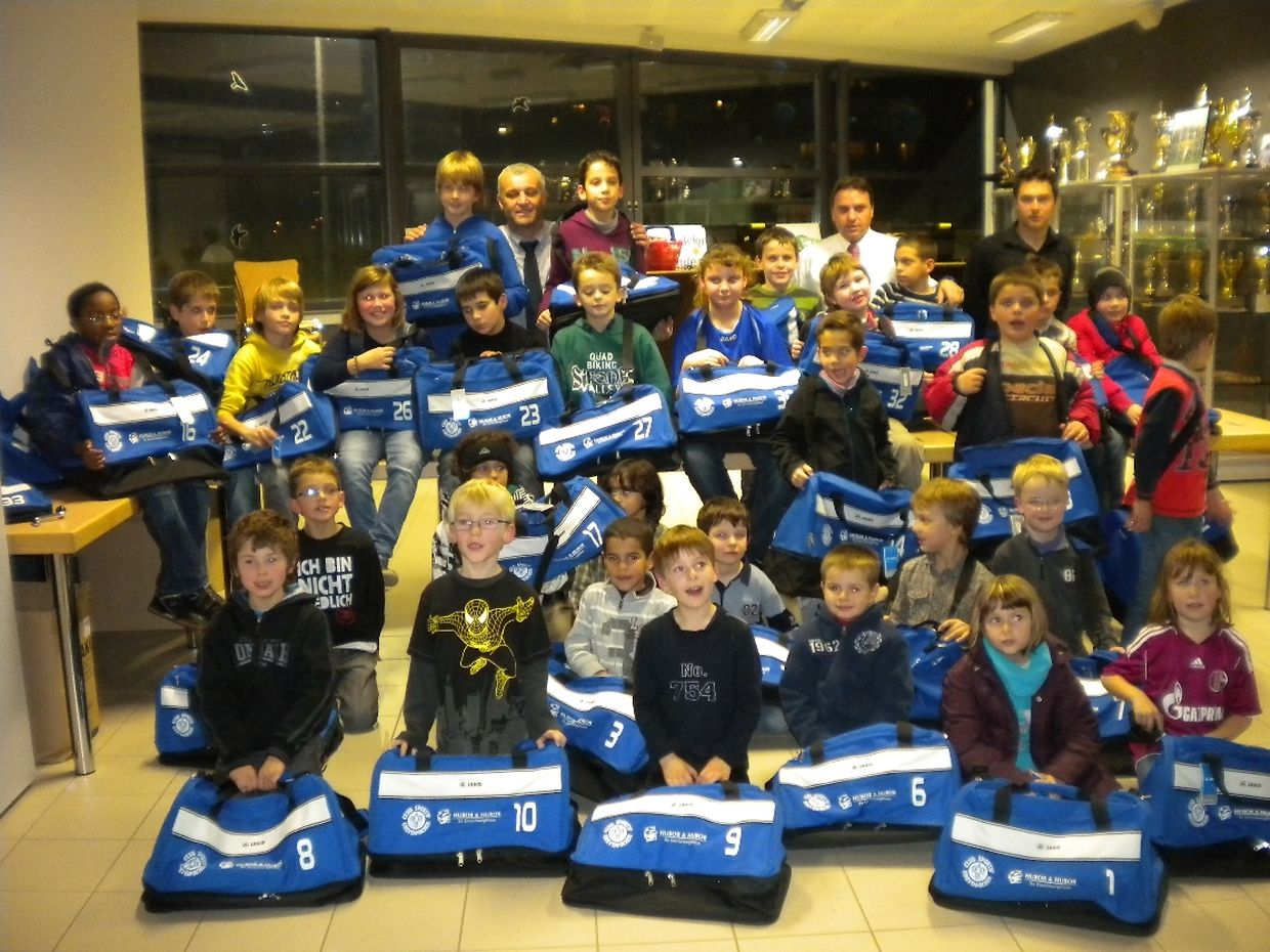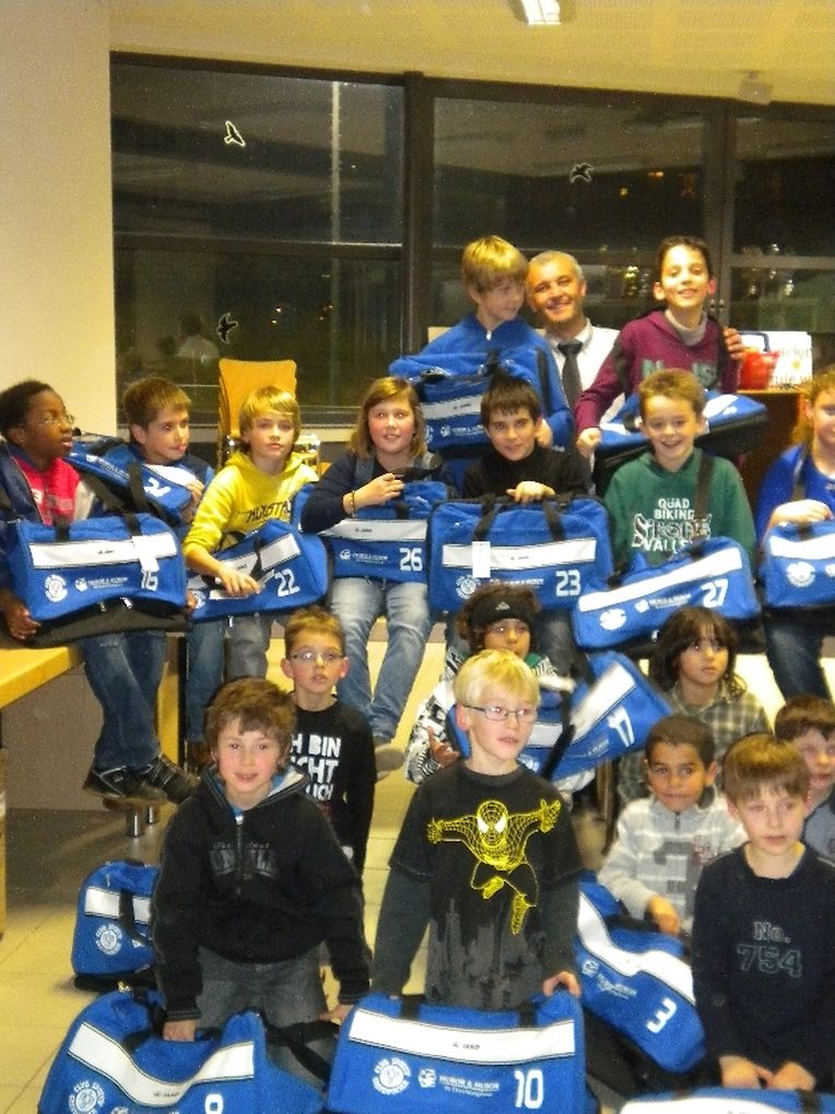 Bambinis , Pupilles an Poussins sin emmer matt Begeeschterung um Training an dofir haat den Kleeschen net nemmen eng Titchen fir Kanner dobei mee och nach eng Trainingsposch gesponsort vun eneraanerem "Einrichtungshaus HUBOR & HUBOR".