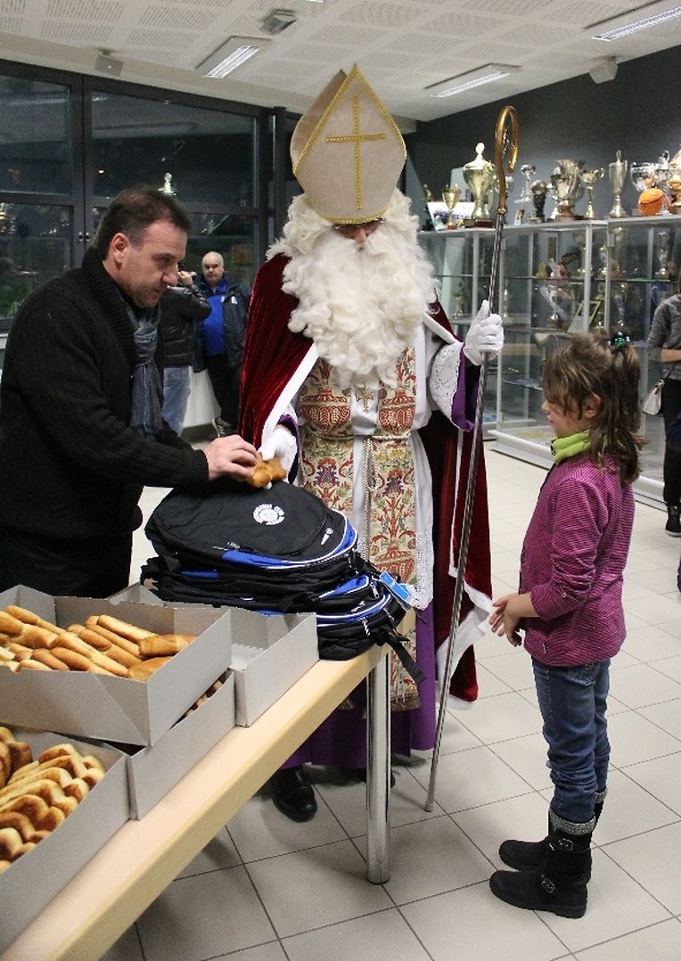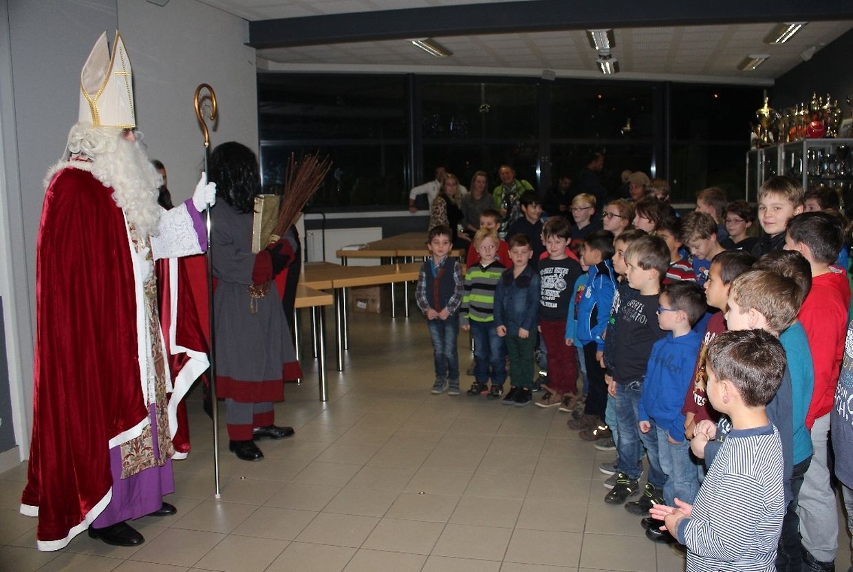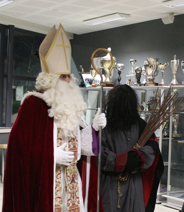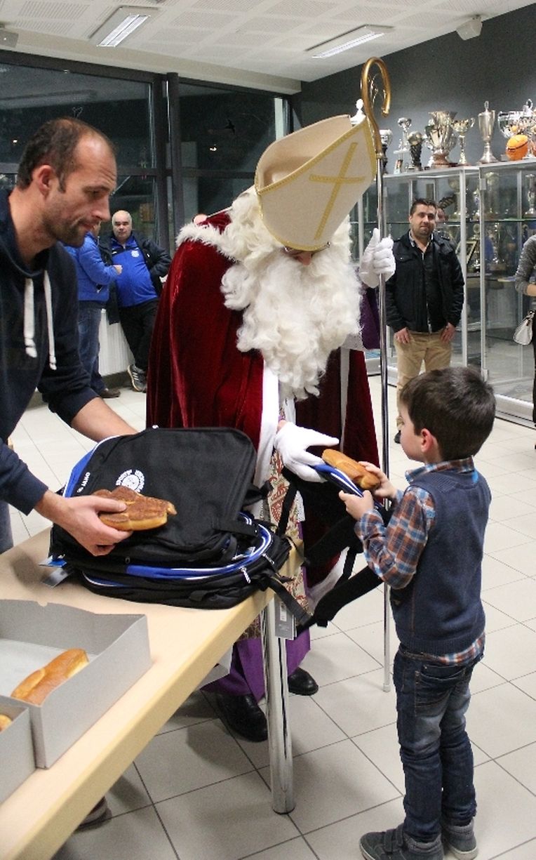 Wéi all Joer huet den Kleeschen an den Housecker erem den Wee op Maacher bei Spiller vum C.S.Gréiwemaacher fond.Spiller hun den Kleeschen an säin schwaarzen Gesell matt engem Lidd empfaang.No enger klenger Usprooch huet den Kleeschen all Spiller en Rucksaack an en Boxenmänchen ausgedeelt . Den Housecker huet awer och e puer Rudden missten ausdeelen !