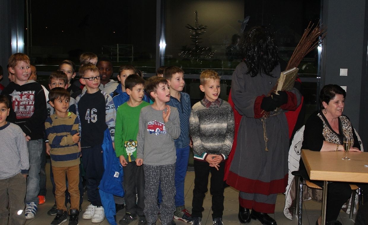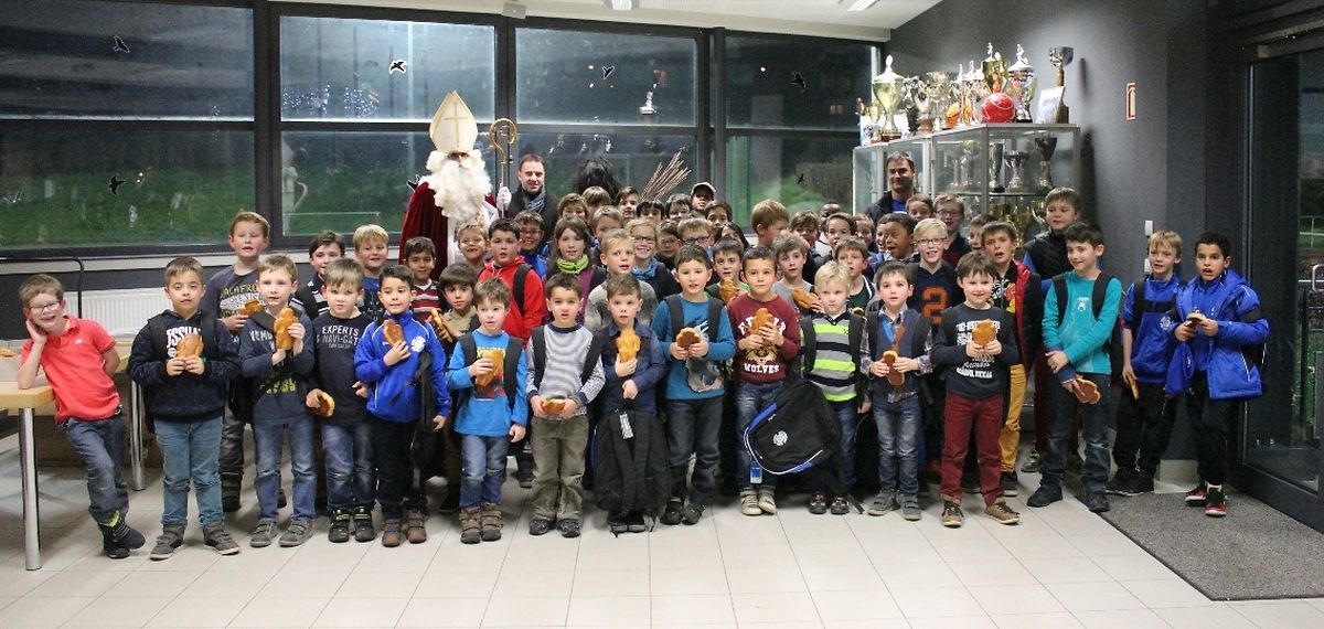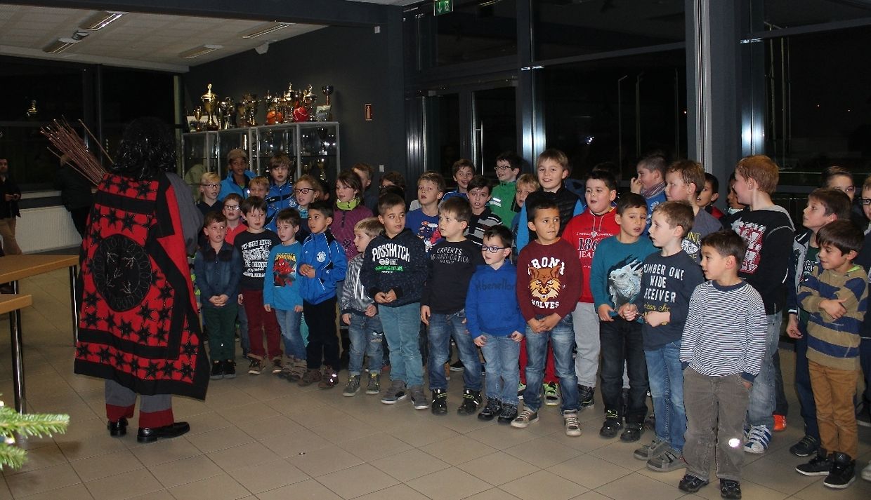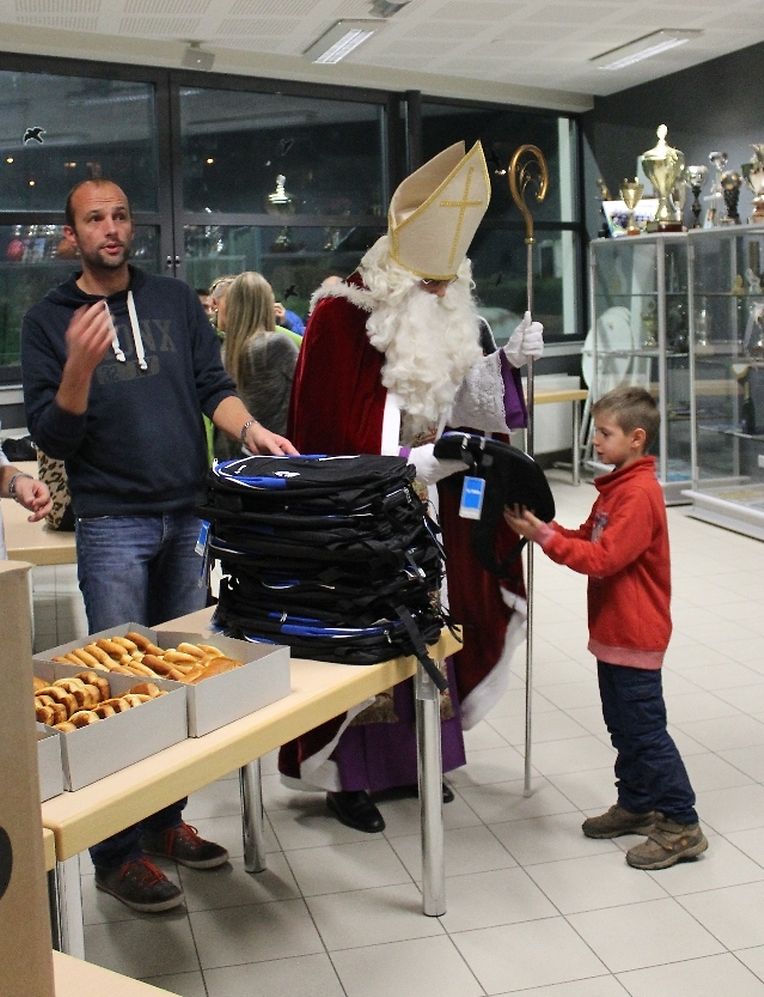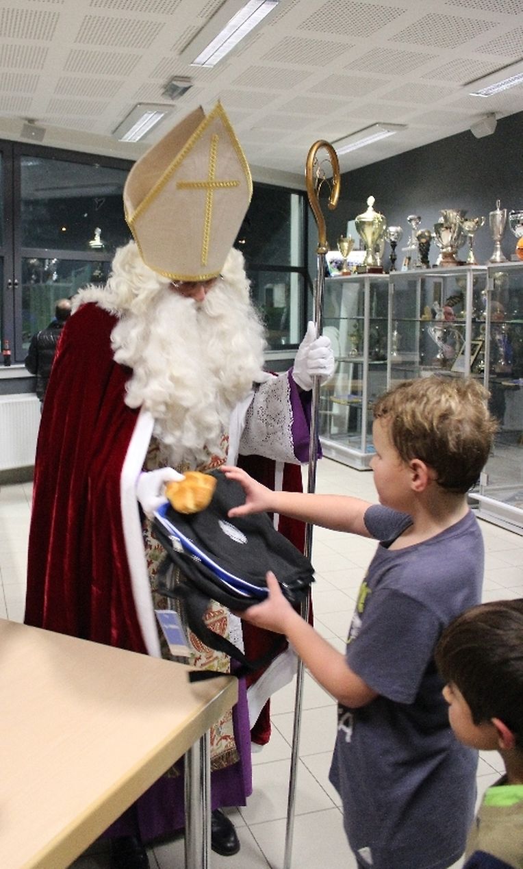 Wéi all Joer huet den Kleeschen an den Housecker erem den Wee op Maacher bei Spiller vum C.S.Gréiwemaacher fond.Spiller hun den Kleeschen an säin schwaarzen Gesell matt engem Lidd empfaang.No enger klenger Usprooch huet den Kleeschen all Spiller en Rucksaack an en Boxenmänchen ausgedeelt . Den Housecker huet awer och e puer Rudden missten ausdeelen !