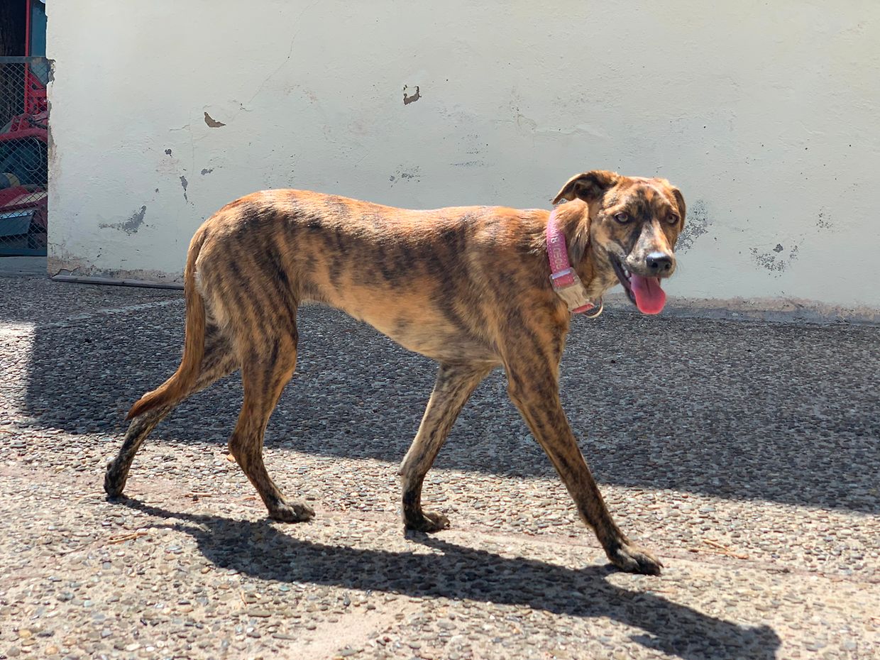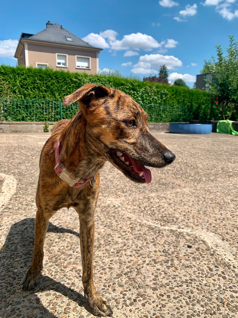 Da sie ein junger Whippetmix ist, sucht sie ein sportliches Zuhause, wo sie vorerst nicht viel alleine gelassen wird, denn das kann sie altersbedingt noch nicht so gut.