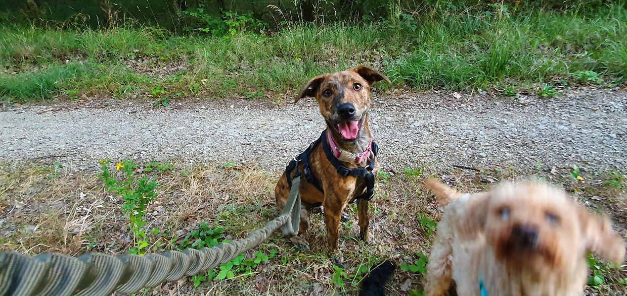 Antonia ist grundsätzlich stubenrein, kennt schon einige Grundkommandos, ist brav im Auto und kann gut an der Leine gehen.