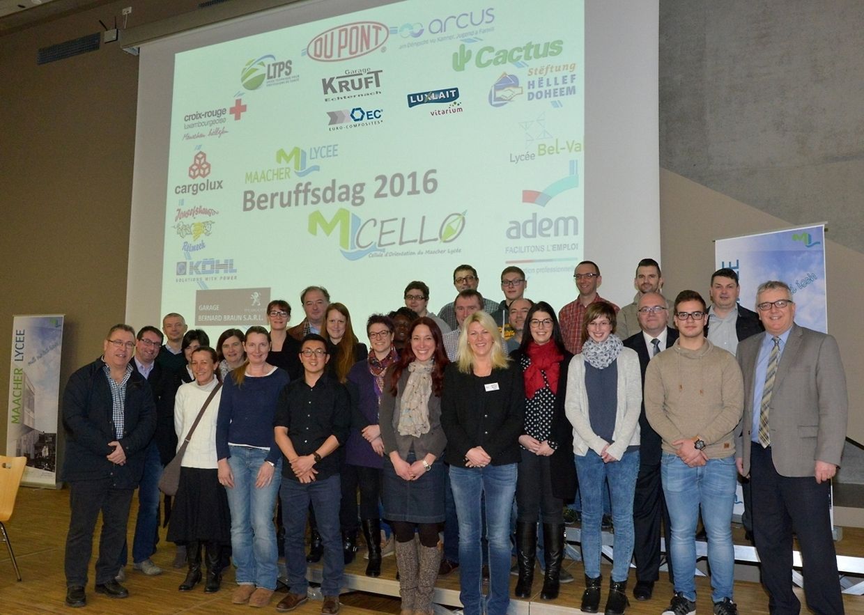 Im Sinne der Berufsorientierung lud das neugegründete CELLO-Team (CELLule d’Orientation) des Maacher Lycée am 22. Februar 2016 Vertreter unterschiedlicher Betriebe, Unternehmen und Schulen zur ersten Ausgabe seines „Berufstages”. Ziel dieser Veranstaltung war es, den rund 90 Schülern der Klassen 9PO, 9PR und 9MO erste Einblicke in vereinzelte Berufe zu bieten.