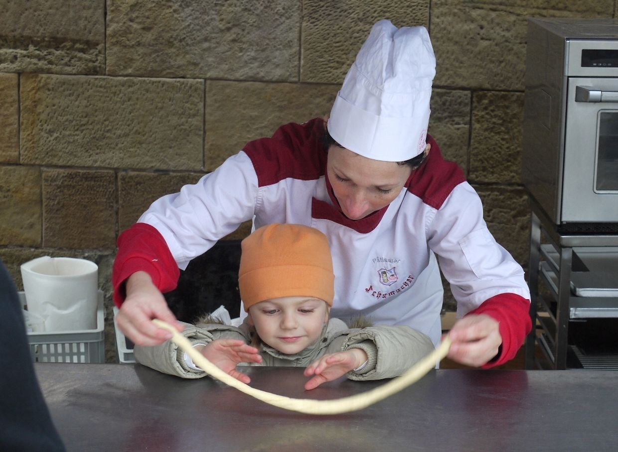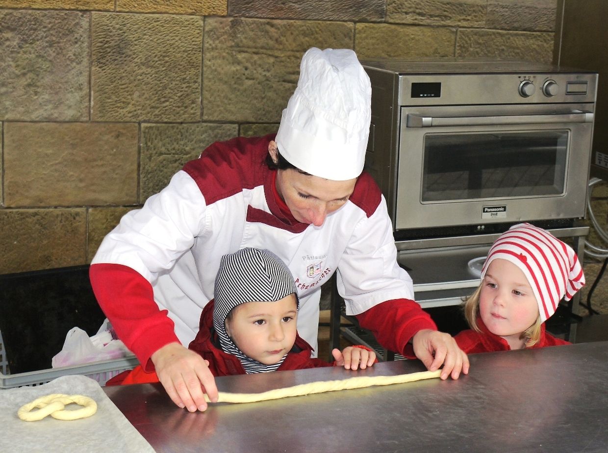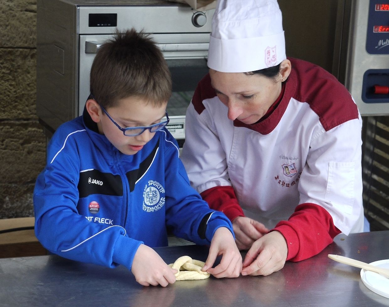 Haut de Mëtteg (Samschdeg), stoung Maacher ganz am Zeeche vun der Bratzel, wéi se op der Musel son. (An der Stad iessen se "Bretzelen") - Vun halwer 3 un kruten d'Léierpersonal an déi Kleng vun de Maacher Bäcker Schumacher a Schiltz gewisen, wéi een eng Bratzel richteg formt. Duerno gouf hiert "Konschtwierk" gebak. D'Kanner krute gläich eng Tiitche mat enger fäerdeger Bratzel mat, an deene Groussen hier goufe fir Télévie versteet. Et wor de ganze Mëtteg eng gutt Stëmmung fir Grouss a Kleng!