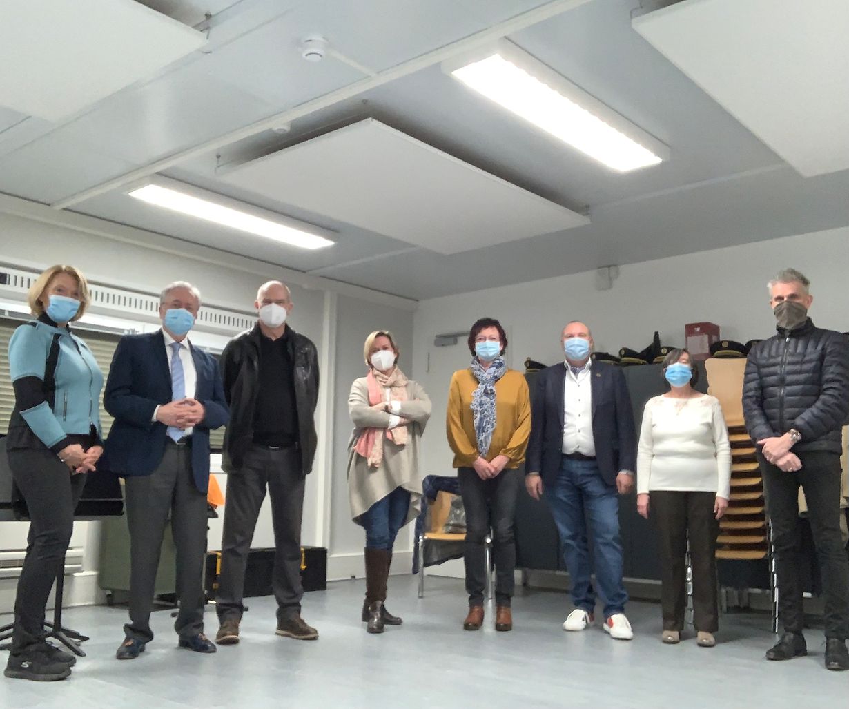 D’ Germaine Funck als Präsidentin, een Deel vum Comité an den Dirigent, Martin Elmquist, waren physisch am Prouwsall dobäi. Déi meescht Memberen, Vertrieder vun der Gemeng an den Dechen Claude Bache konnten iwwer den Internet déi Versammlung verfolgen.