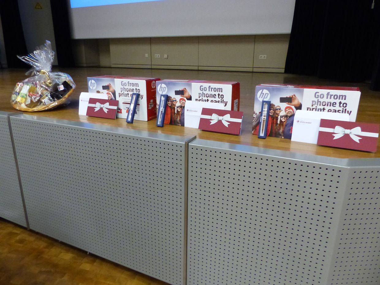 Auch in diesem Jahr prämieren neben den Urkunden, Preise die drei besten Schreiber am PC aus den verschiedenen Altersgruppen. Zusätzlich konnten in diesem Jahr alle anwesenden Wettbewerber an einer « Tombola surprise » teilnehmen und ihre Urkunde durch einen Preis „aufpeppen“. Gesponsort wurden die Preise von „Voyages Emile Weber“, „Foyer“, „Sales Lentz Group“, „Banque et Caisse d’Epargne de l’Etat“, „United Trust“, „La Provençale“ und AETCO.