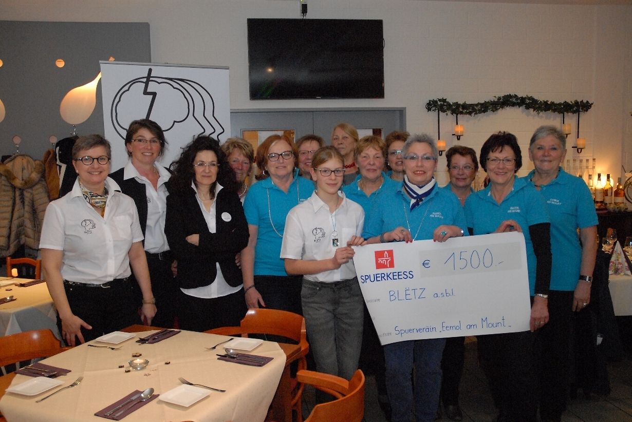 Déi Dammen vum Spuerveräin sinn iwwerzeegt, dass de Chèque vun 1.500.- €, deen si den 25.3. an der Brasserie Op Flohr iwwerreecht hunn gutt ugewannt gëtt.