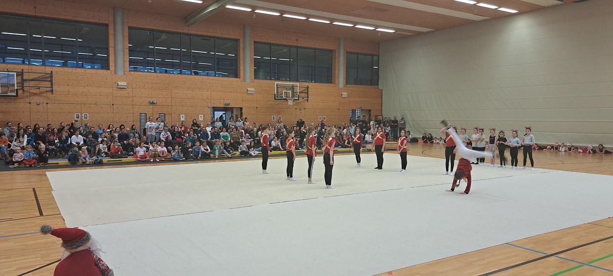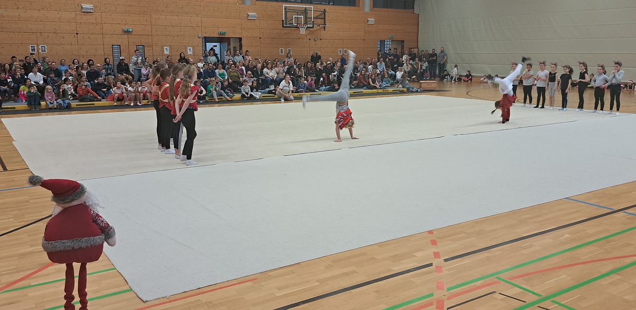 In insgesamt acht Gruppen präsentierten 90 Vereinsmitglieder zur Weihnachtsgala am 14. Dezember ihr Können zusammen mit ihren Trainerinnen, allen voran Bénédicte Lorenski, vor ihren Eltern und Freunden. Die Schulturnhalle des Maacher Lycée war fast zu klein, um die Besucher zu fassen. Am Ende gaben dann einige der Trainerinnen noch eine Show zum Besten, die zeigte, zu was Rhythmische Sportgymnastik in der Lage ist. Zu guter Letzt kam dann auch der Weihnachtsmann und beschenkte die Kinder für ihre seit September 2024 geleistete Arbeit und verabschiedete sie in die Weihnachtsferien.