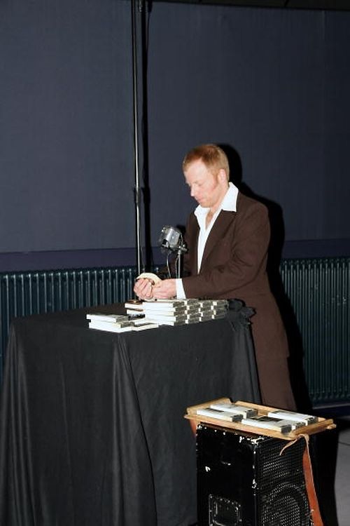 Auf der Bühne blättert er die Fotos unter einer Videokamera ab, projiziert die Bilder auf die Leinwand und erzählt die Geschichten der Menschen, die er fotografierte. Im Laufe des Abends erzählte Volker Gerling von den großen, kleinen, ernsten und skurrilen Zufallstreffen und lässt die fotografierten Menschen für einen Moment zum Leben erwachen.