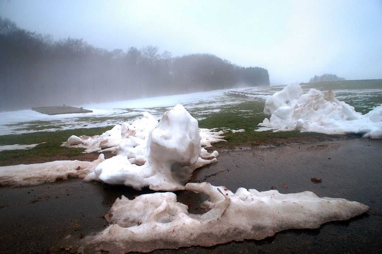 De massive Schnéi, den décke Niwel, an dann den permanente Reen, huet nach vir méi eng gespensterich Atmosphär gesuergt.
