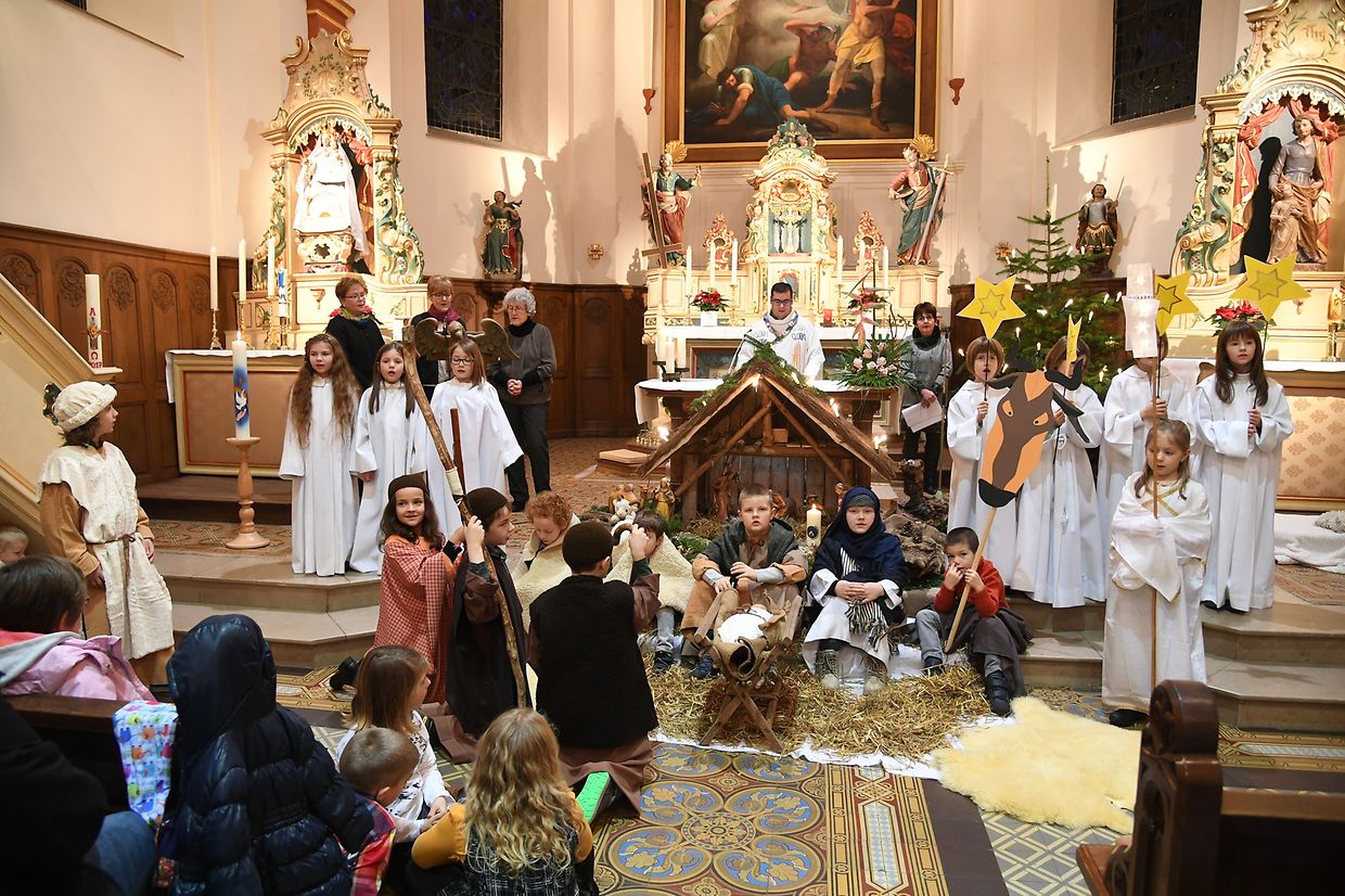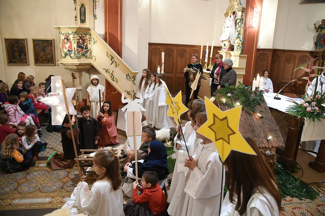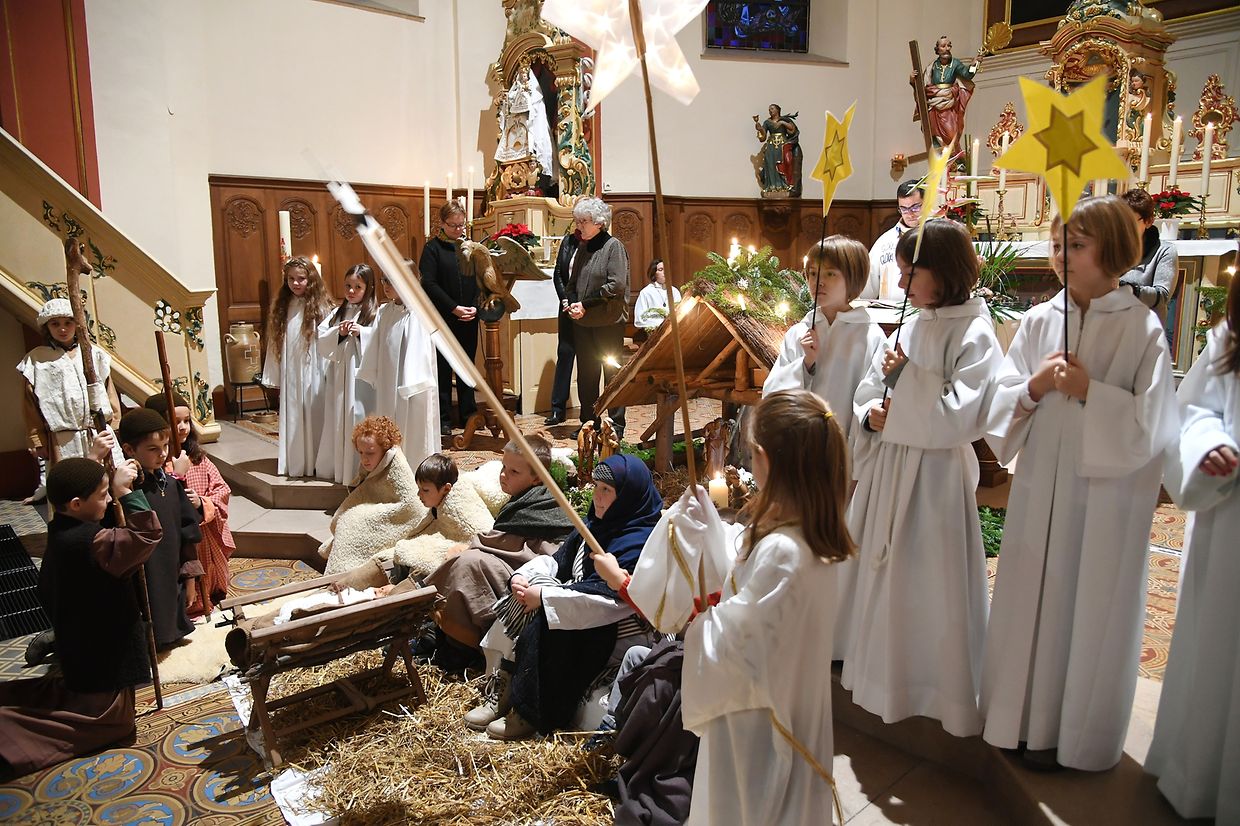 Groussbus: An der bis op di läscht Platz gefëllte Kierch zu Groussbus hunn op Hëllegowend eng grouss Zuel vu Kanner aus der Par Atertdall - Sainte Claire ënnert der Leedung vun der Kannerpastoral- Equipe op eng liewig Aart a Weis, d’Chrëschtgeschicht duergestallt. D’Massfeier, zelebréiert vum Paschtouer Ricardo Monteiro, gouf mat Chrëschtlidder vun de Kanner mat der Chorale ënnert der Leedung vum Fos Schuster a mam Jos Helbach op der Uergel musikalisch a mat alle Leit gesanglich verschéinert. Mam Verdeele vum Friddensliicht ass dës besënnlech Feier op en Enn gangen.
