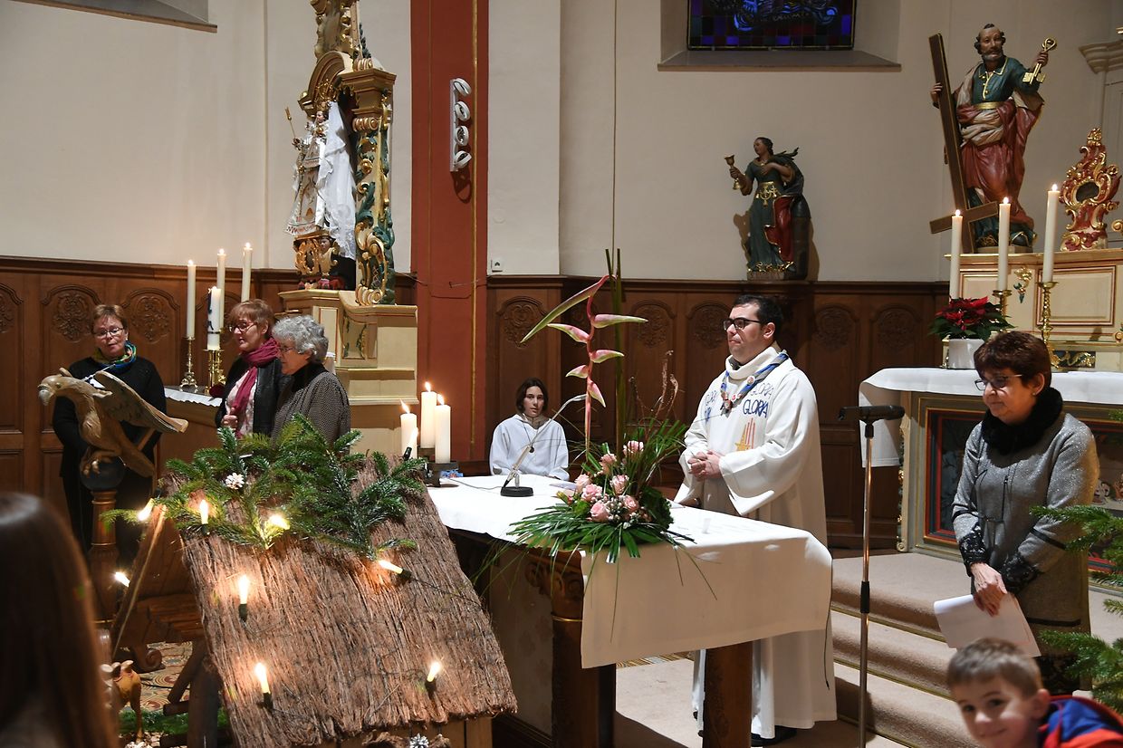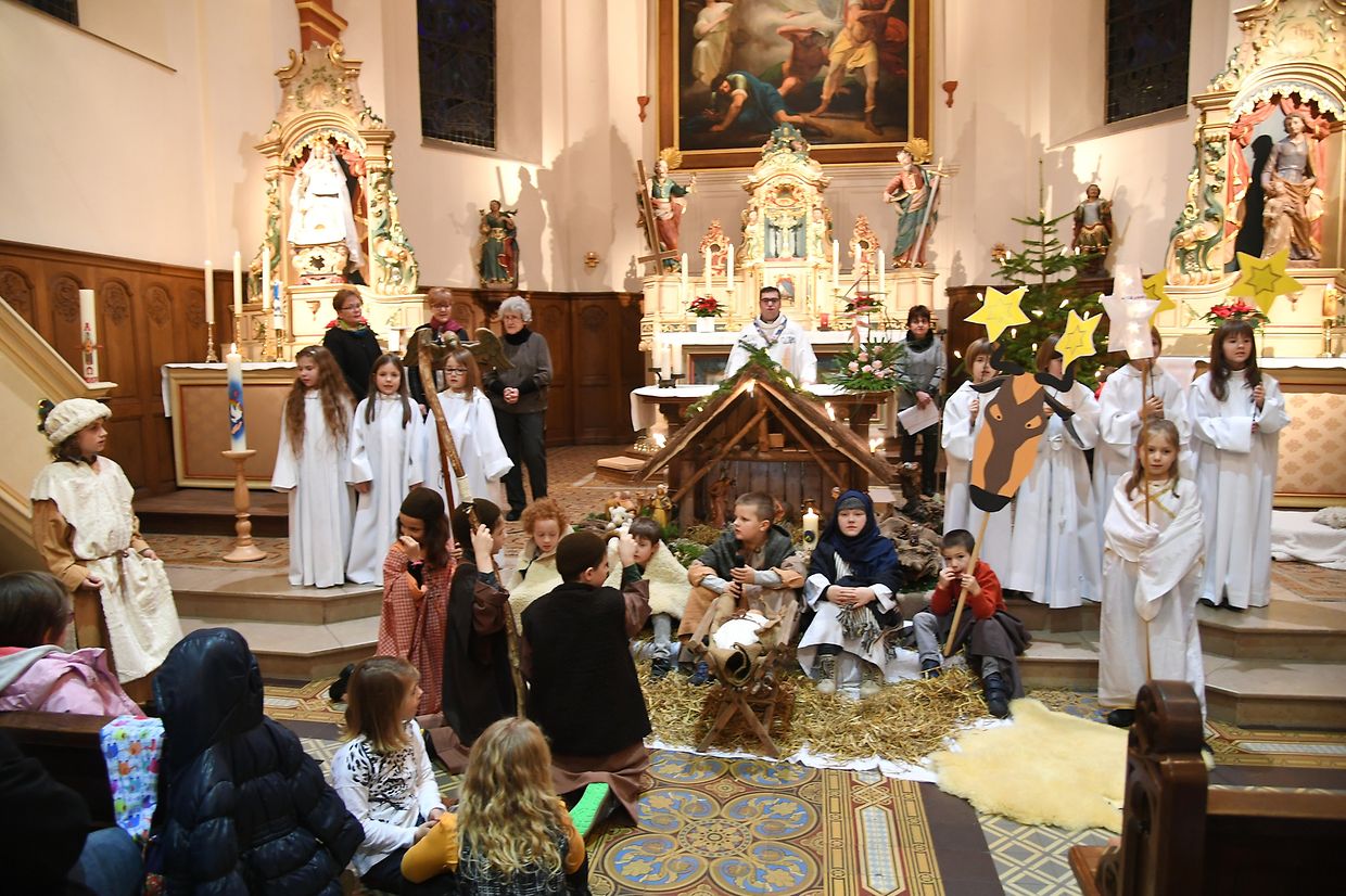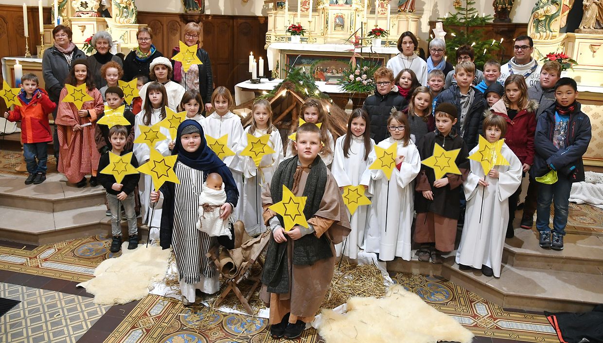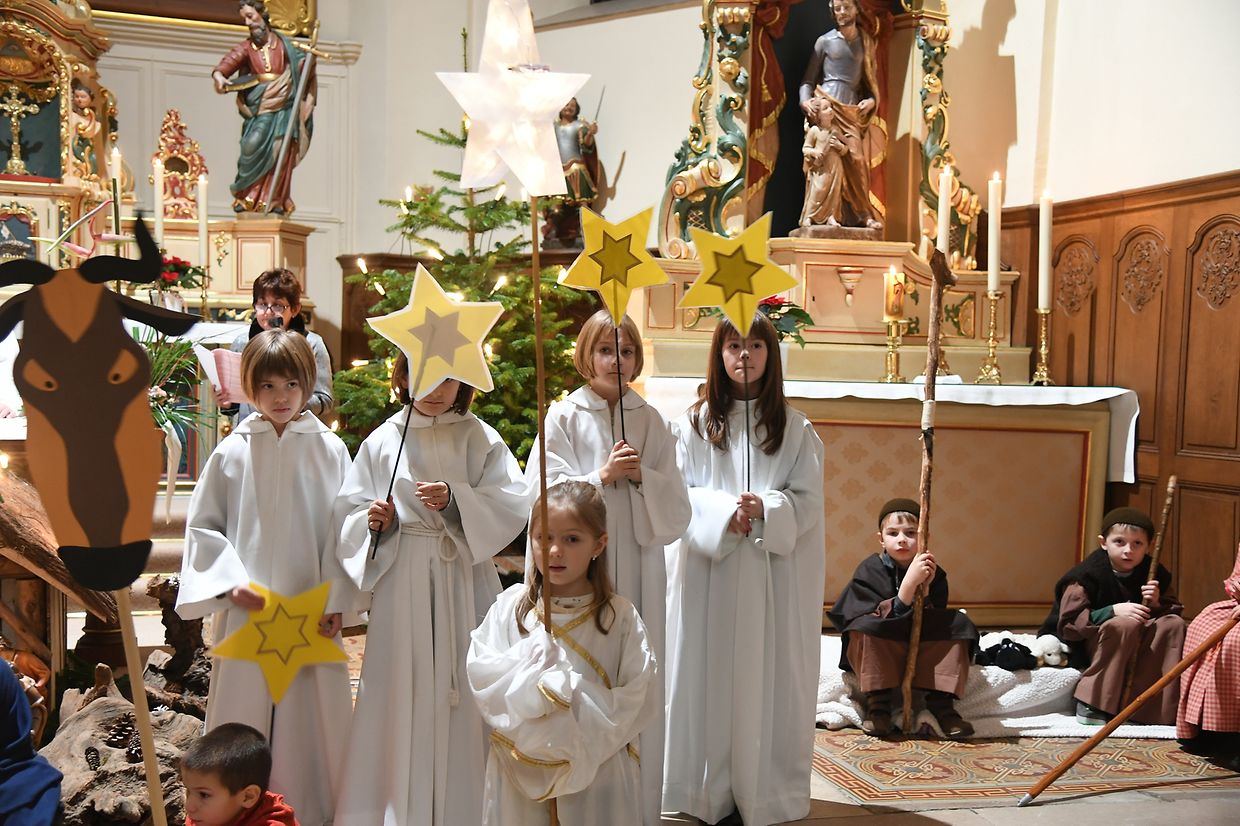 Groussbus: An der bis op di läscht Platz gefëllte Kierch zu Groussbus hunn op Hëllegowend eng grouss Zuel vu Kanner aus der Par Atertdall - Sainte Claire ënnert der Leedung vun der Kannerpastoral- Equipe op eng liewig Aart a Weis, d’Chrëschtgeschicht duergestallt. D’Massfeier, zelebréiert vum Paschtouer Ricardo Monteiro, gouf mat Chrëschtlidder vun de Kanner mat der Chorale ënnert der Leedung vum Fos Schuster a mam Jos Helbach op der Uergel musikalisch a mat alle Leit gesanglich verschéinert. Mam Verdeele vum Friddensliicht ass dës besënnlech Feier op en Enn gangen.