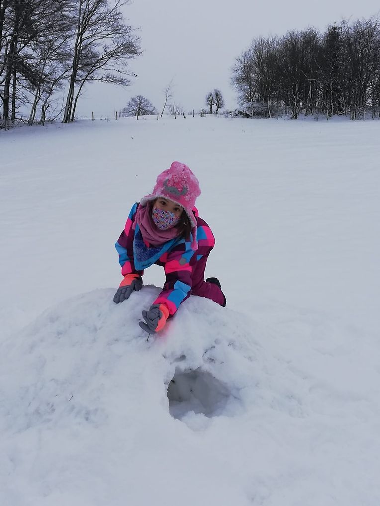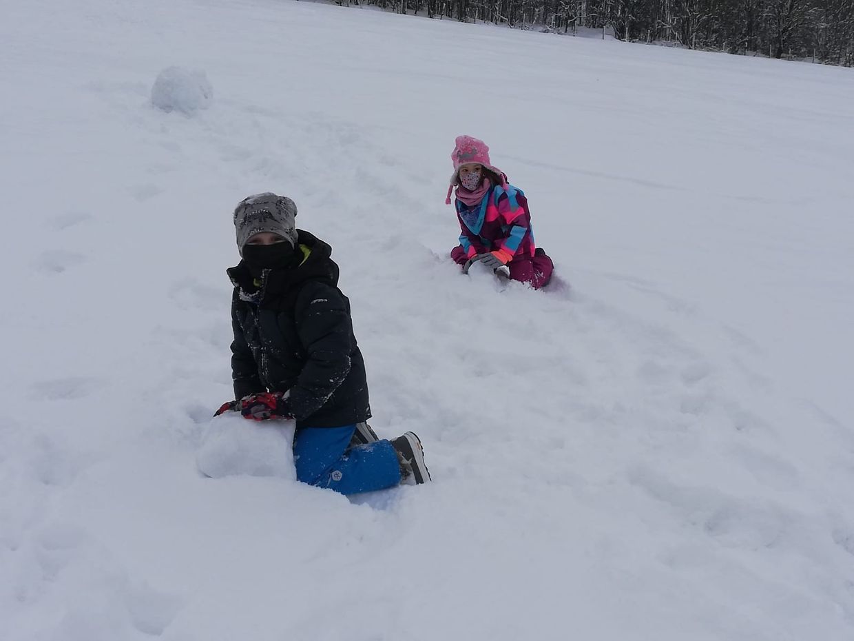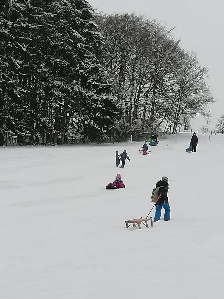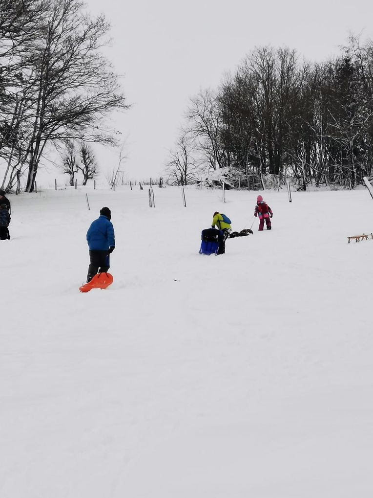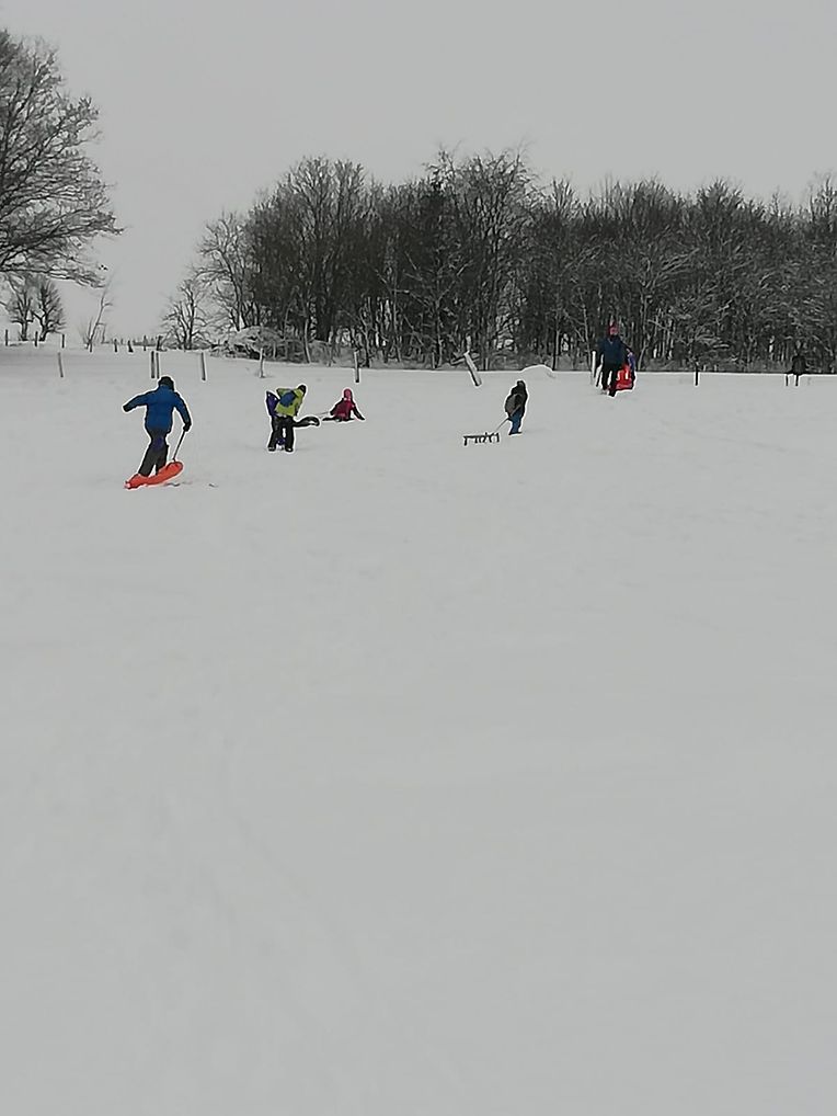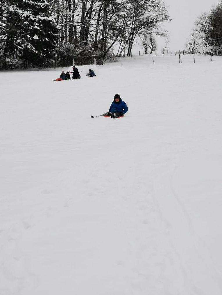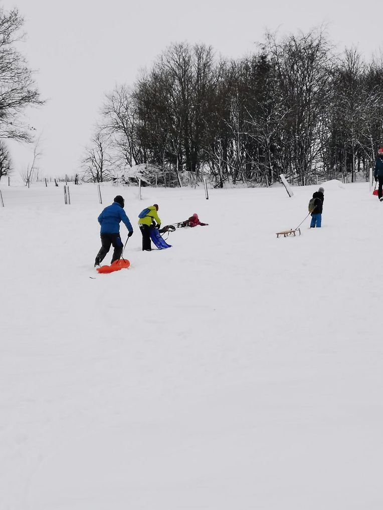 2 Stonnen laang Schlitt gefuer, Schnéimännercher bauen an einfach nëmmen Spaass hunn an toben kënnen – an dat Ganzt am Anhalen vun den sanitären Moossnamen.