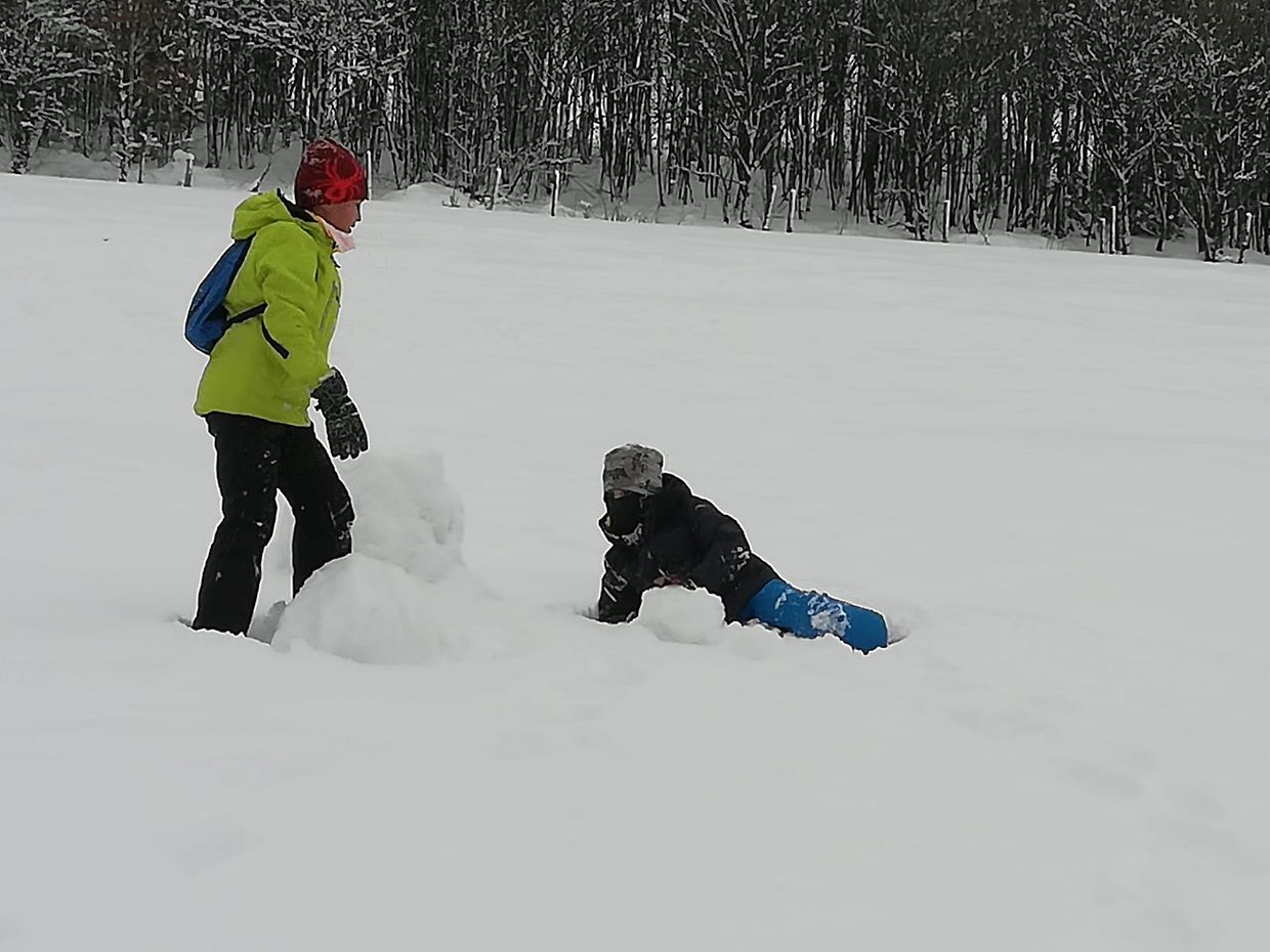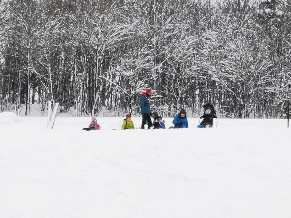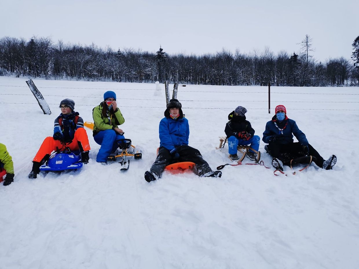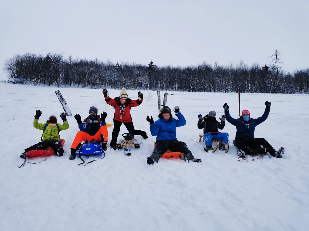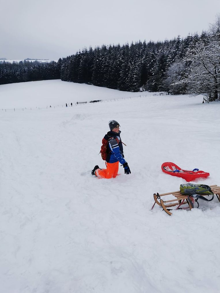 2 Stonnen laang Schlitt gefuer, Schnéimännercher bauen an einfach nëmmen Spaass hunn an toben kënnen – an dat Ganzt am Anhalen vun den sanitären Moossnamen.