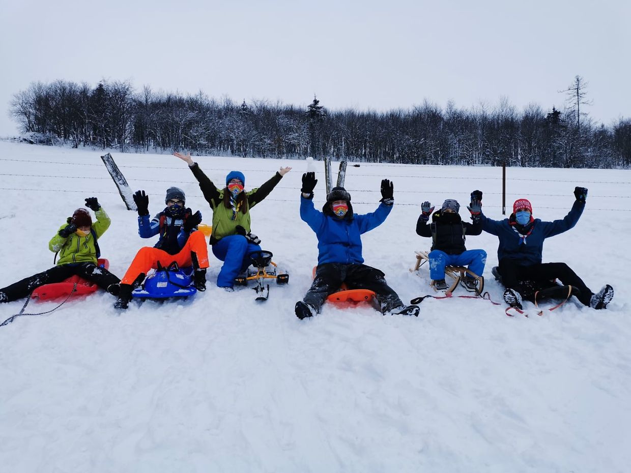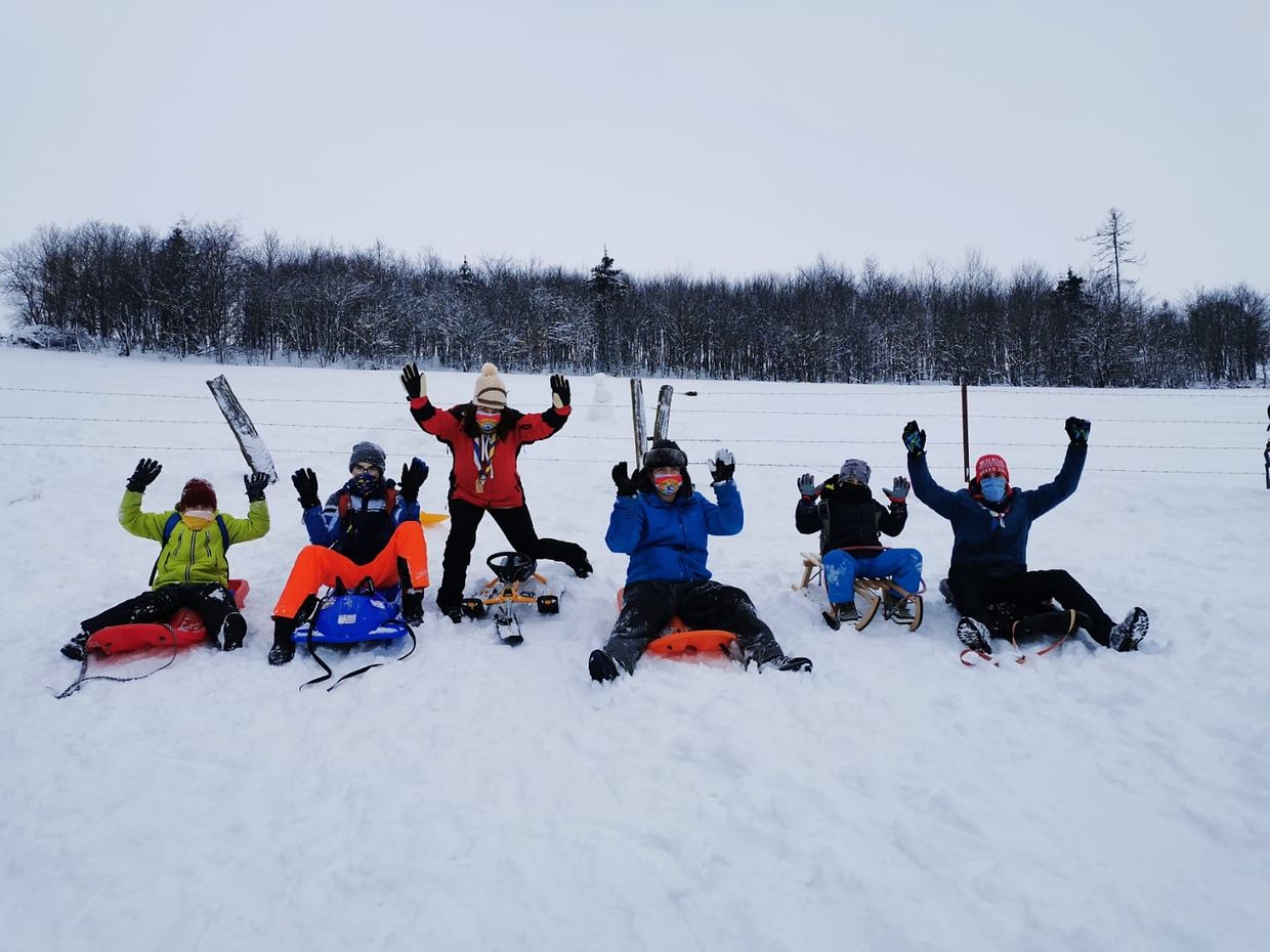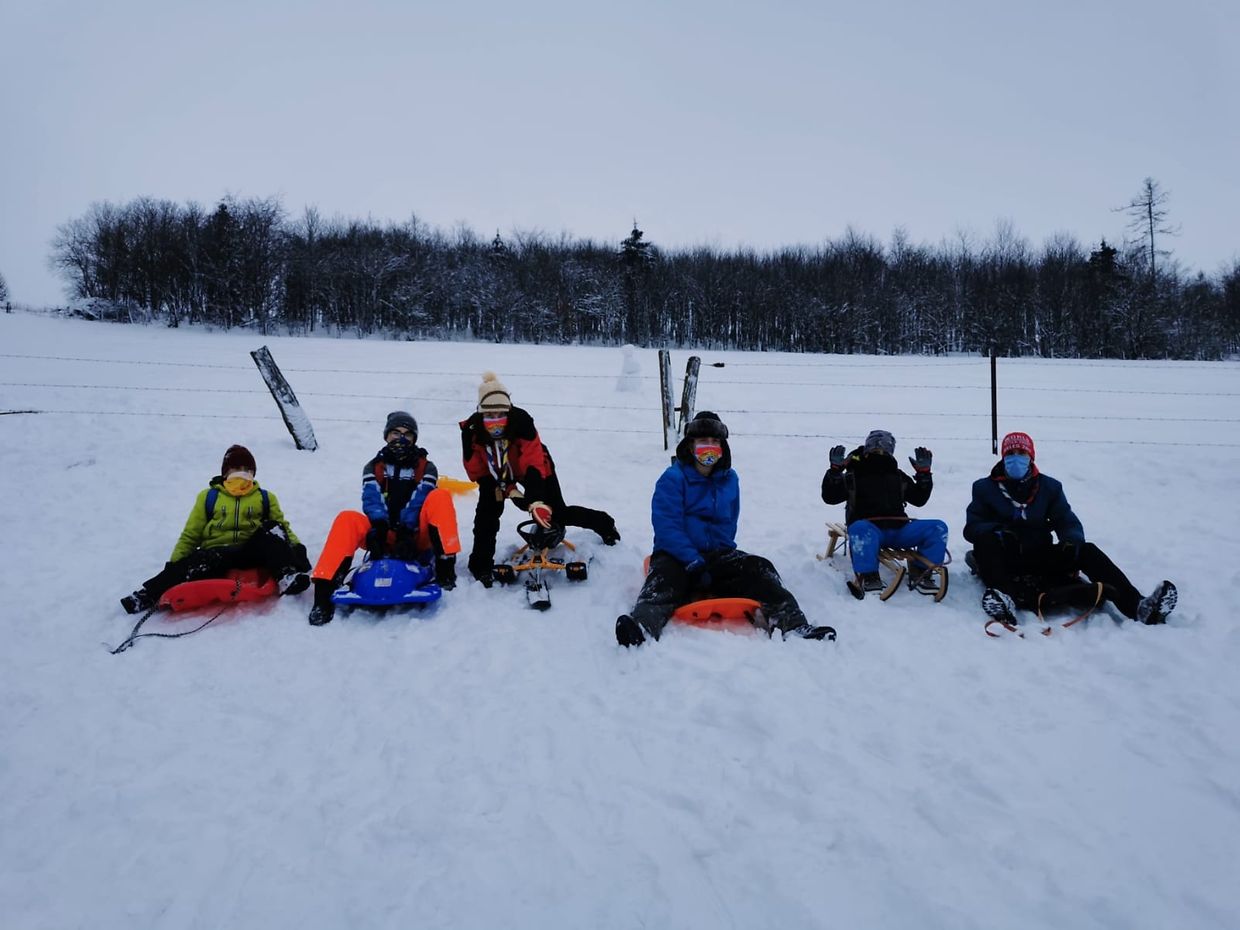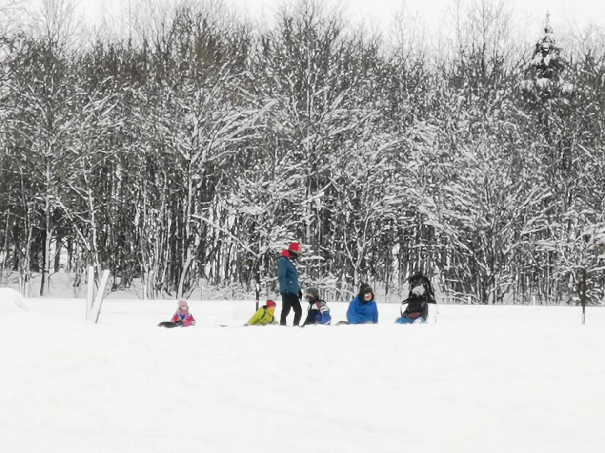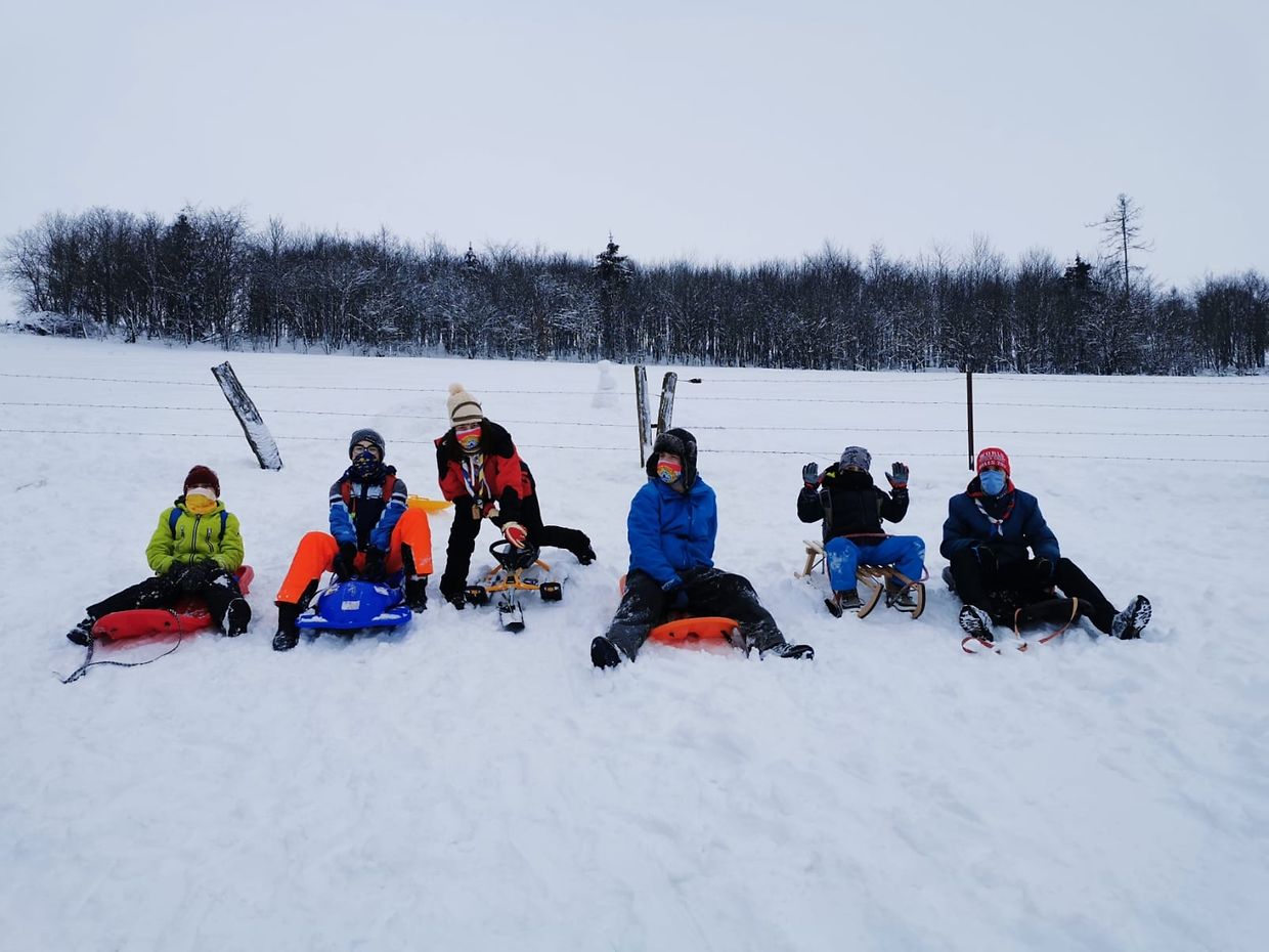 2 Stonnen laang Schlitt gefuer, Schnéimännercher bauen an einfach nëmmen Spaass hunn an toben kënnen – an dat Ganzt am Anhalen vun den sanitären Moossnamen.