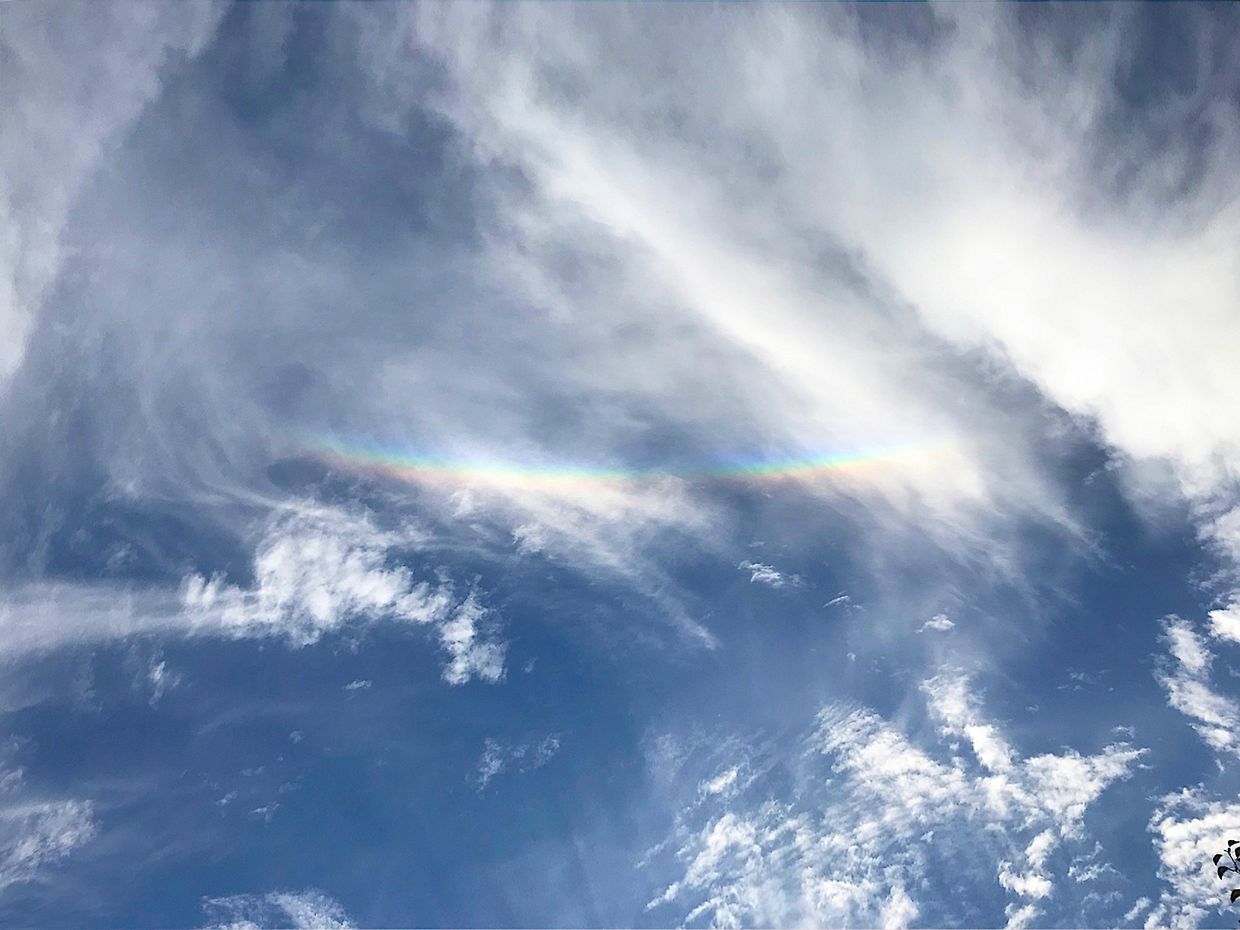 Ein Zirkumhorizontalbogen verläuft in niedriger Höhe kreisförmig um den Himmelszenit herum, wobei jedoch maximal nur das der Sonne zugewandte Viertel dieses Kreises sichtbar ist. Die Erscheinung hat die Form eines regenbogenfarbigen Bogenstücks und befindet sich etwa 46° unterhalb der Sonne. Obwohl die Erscheinung einem Regenbogen ähnelt, ist sie kein Regenbogen und die Farben stimmen mit denen eines Regenbogens nur scheinbar überein.