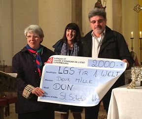 Lëtzebuerger Guiden a Scouten St. Schetzel Weimeschkiirch a.s.b.l. 50. Anniversaire mat Scheck Iwwerreechung