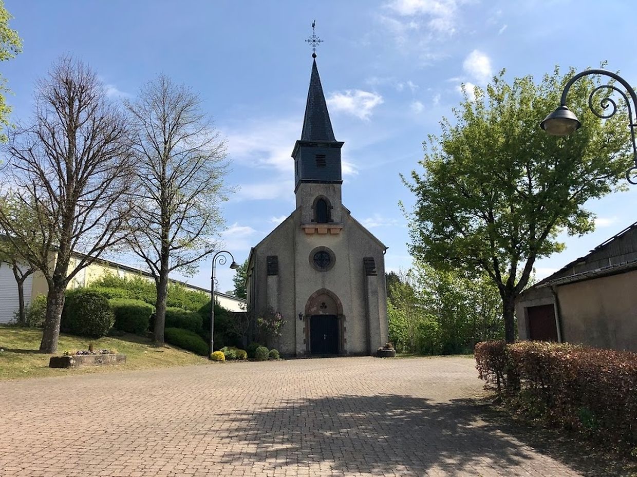 D'Kierch steet am südlechen Deel vun Duerf op der Duerfstrooss.