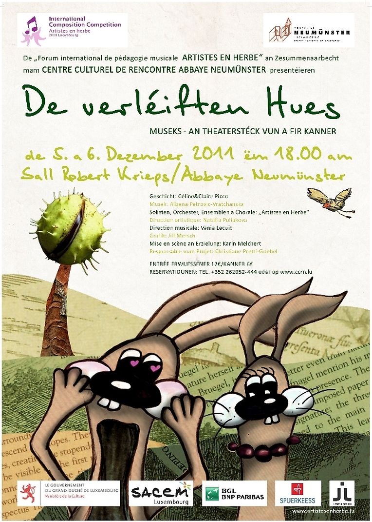 Luxemburg - Grund DE VERLEIFTEN HUES /musek an theaterstek vun a fir kanner Albena Petrovic 2 Bildergalerie Bitte scrollen Sie nach unten,um weitere Bilder zu sehen. Veröffentlicht am Samstag, 15. Oktober 2011 um 01:06 Unpassenden Inhalt angeben Weitere Neuigkeiten von Albena Petrovic > WEEKEND PIANO school "Artistes en Herbe" 21.08.18 Luxemburg - Zentrum