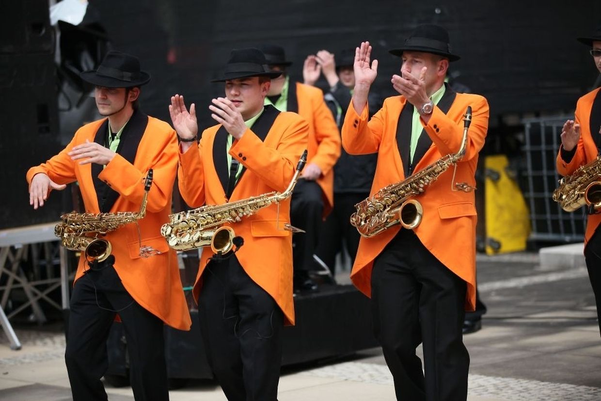 Déi matt den färwegen Paltongen waren die Belsch Grupp "Sax á fond" an sin zweschenduerch opgetrueden.