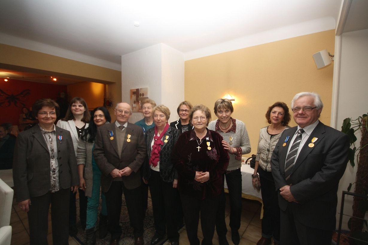 Am vergangenen Wochenende hatte der Vorstand der „Chorale Sainte –Cécile La Hammoise“ zur Jahresabschlussfeier in das „Restaurant Delicious“ nach Sandweiler eingeladen. Bei dieser Gelegenheit überreichte Anny Hansen-Hilger im Namen der „Union Grand-Duc Adolphe“ die Verdienstmedaillen in Silbergold für 30 Jahre Mitgliedschaft an André Hansen und Roby Steffen, die Silbermedaille an Marie-Anne Büchler und Michèle Reuter-Ludivig sowie die Verdienstmedaille in Bronze für 10 Jahre Mitgliedschaft an Annick Schilling-Thill. Carmen Borg erhielt das UGDA –Abzeichen währenddessen Renée Ludivig-Oberlinkels und Annick Schilling-Thill für deren 10-jährige Aktivität als stellvertretende Dirigentinnen geehrt wurden. Patrick Jemming wurde ausgezeichnet für 10-jährige Präsidentschaft des Vorstandes der Chorale Sainte-Cécile La Hammoise“ Im Namen des Pius-Verbandes überreichte Vizepräsidentin Charlotte Christophory-Jung die Bronzemedaille mit Eichenlaub an Renée Ludivig-Oberlinkels für 30 Jahre Mitgliedschaft im Gesangverein davon zehn als beigeordnete Dirigentin. Carmen Borg erhielt das Verdienstabzeichen (5 Jahre) , Annick Schilling-Thill die Bronzemedaille (10 Jahre) und Marianne Buchler-Mossong die Silbermedaille (20 Jahre). Mit der Goldmedaille des Pius-Verbandes wurden André Hansen, Roby Steffen, Anny Hansen-Hilger und Martha Pirsch-Zenner geehrt. (G.L.)