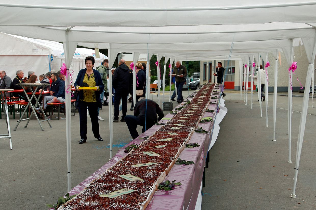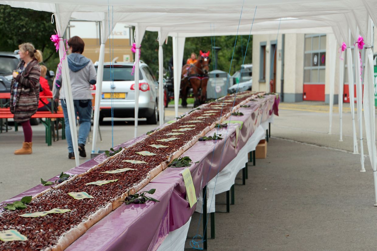 Der Höhepunkt der diesjährigen Veranstaltung war das Aufschneiden einer 30 Meter langen ,, Quetschentaart” die von der Bäckerei Jos a Jean-Marie hergestellt wurde. 65 Kilo Teig, sowie 120 Kilo Quetschen wurden verarbeitet bevor am Vortag des Festes 50 Bleche benötigt wurden um diese Riesentorte zu backen. Diese wurde dann, nachdem sie vom Präsidenten Jean-Pierre Kass aufgeschnitten worden war in Portionen für den guten Zweck verkauft . Ein Teil des Erlöses geht an die Vereinigung APEMH.