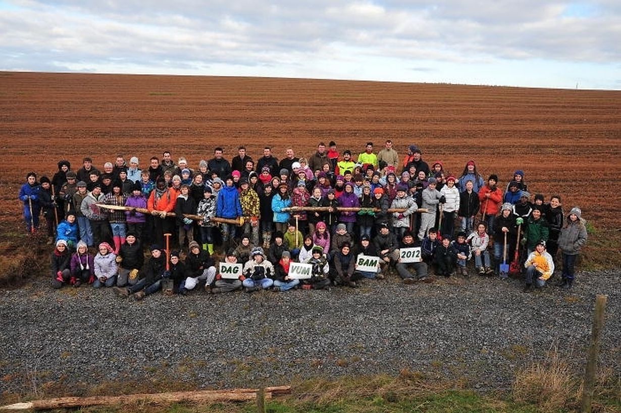 Im Rahmen des „Dag vum Bam“ pflanzten die Schulkinder des vierten Zyklus aus der Regionalschule aus Harlingen am Montag entlang eines Weges im Bereich der Werkstätten des technischen Dienstes der Gemeinde Bauschleiden im Ort genannt „Op der Fléiber“ eine zweireihige Hecke auf einer Länge von rund 350 Metern.