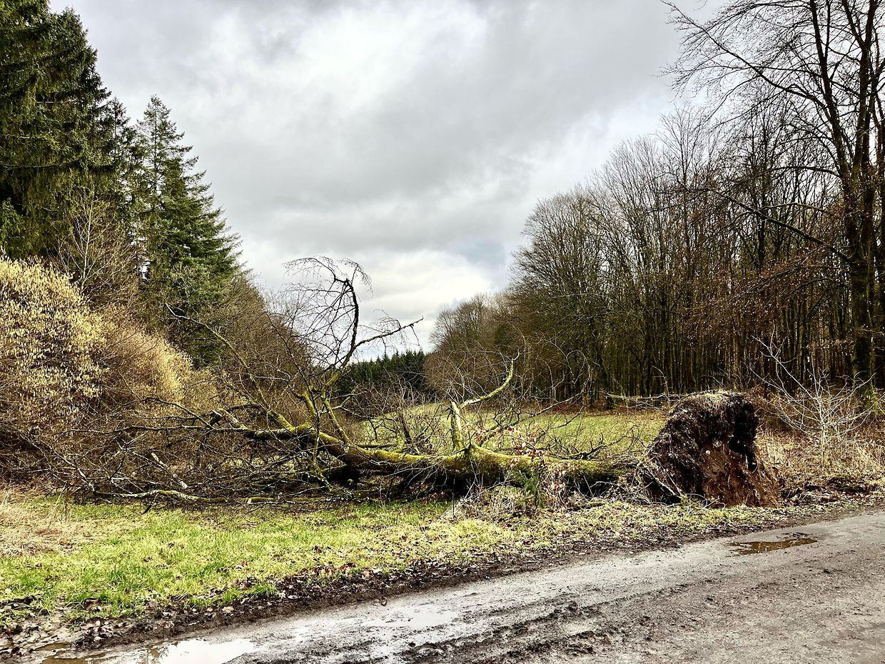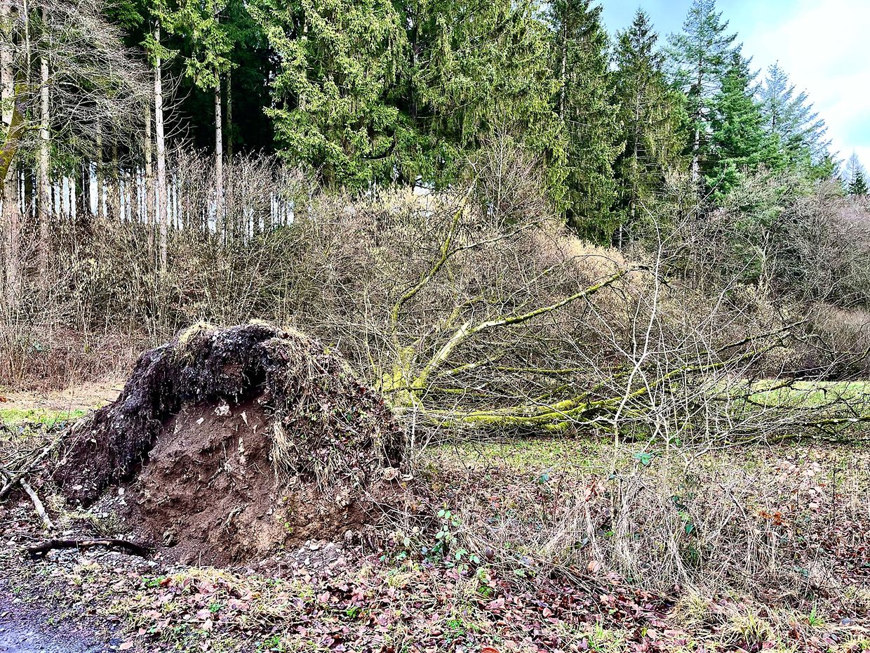 Der Baum ist tot, seine Wurzeln waren gegen den Sturm zu klein und schwach!