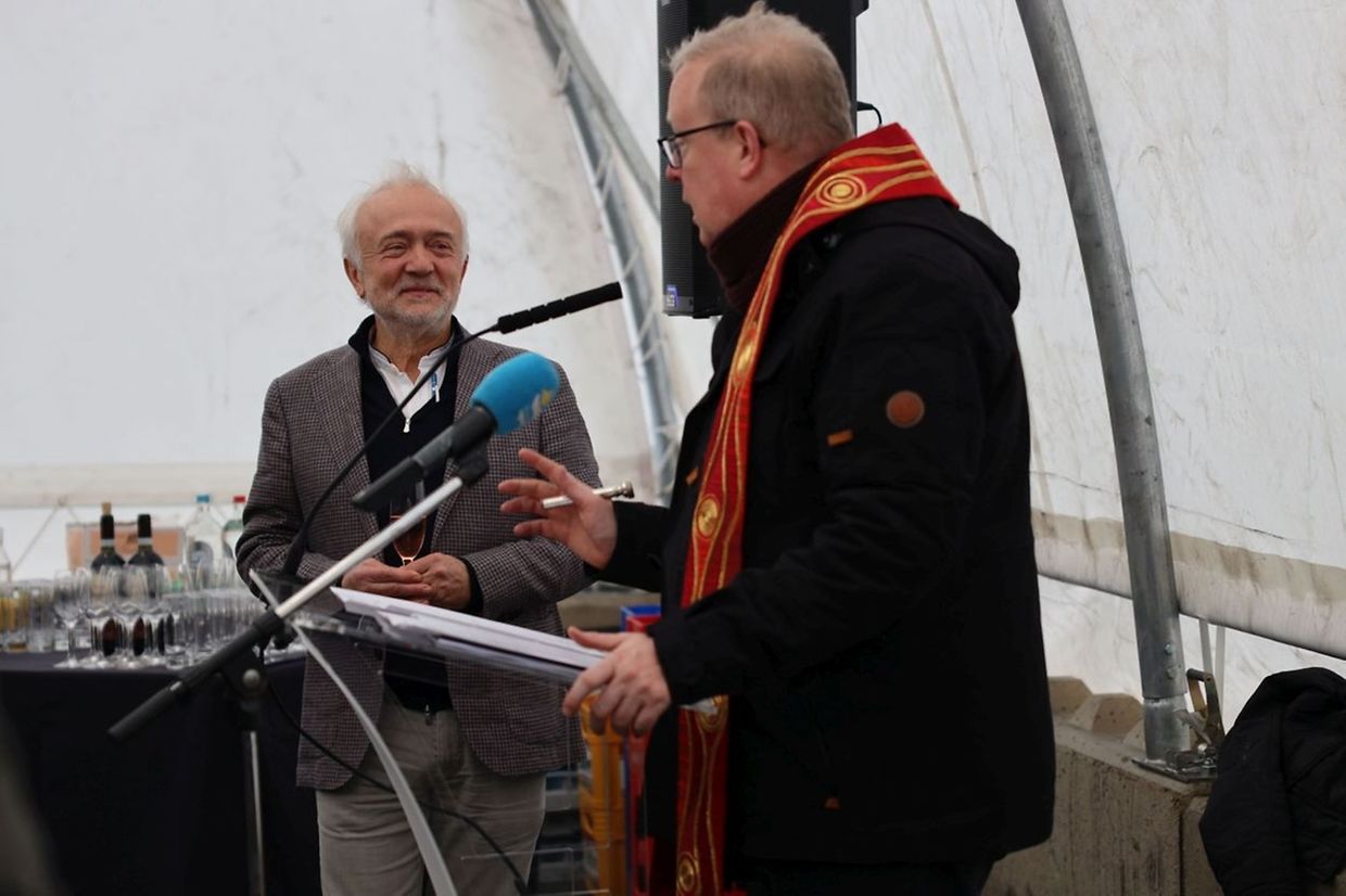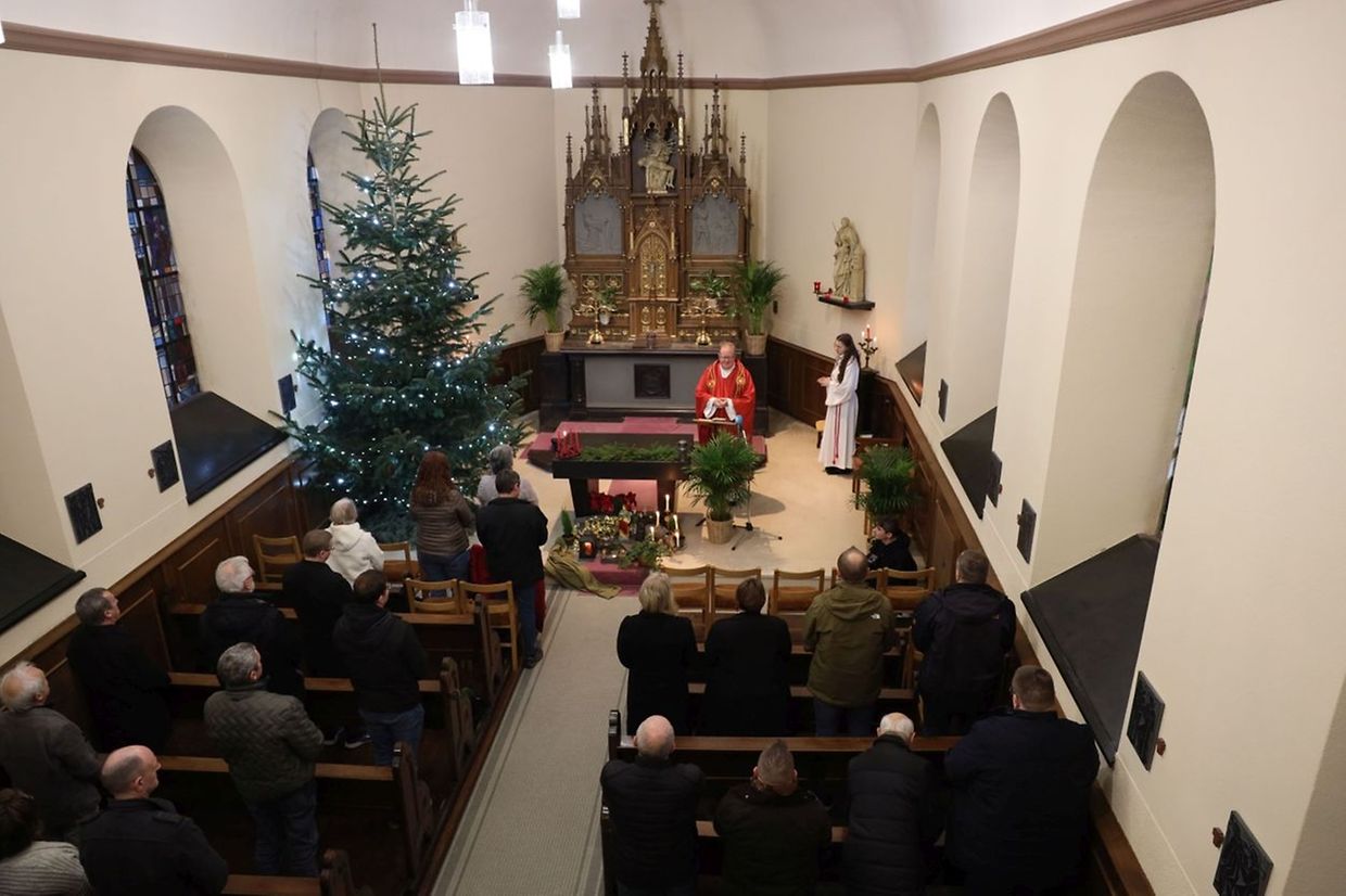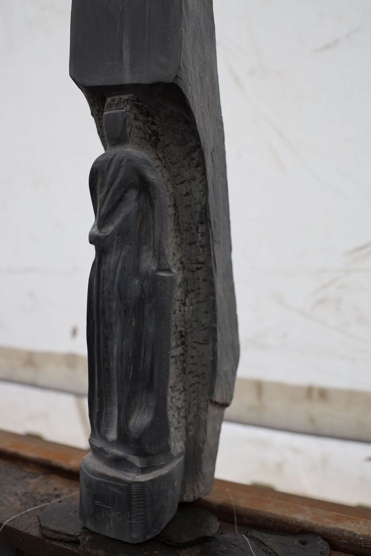 Ensemble avec leurs collègues de la carrière ‘Schiste de Martelange’ et les Sapeurs-Pompiers de la Commune, les Amis de l’Ardoise ont fêté leur jour de la Ste Barbe samedi, le 9 décembre 2023. La journée commença avec une messe à l’église de Wolwelange (GDL) célébrée par le curé Joël Santer et embellie par les chants de la chorale de la paroisse de Rambrouch. La fête officielle continua ensuite à Martelange (B) à l’ancienne ardoisière Donner où une nouvelle statue de Ste Barbe, sculptée en ardoise par l’artiste Vincent Theret, fut bénie par le curé. Elle fut installée ensuite par les ouvriers de la carrière à son emplacement définitif près du puits ancien. Après le vin d’honneur offert par l’exploitant Windeshausen, l’après-midi a vite passé autour d’un repas chaleureux réunissant amis et collègues autour de discours animés et intéressants. Une fête transfrontalière sous l’égide de la protectrice des mineurs et des pompiers à refaire, Ste Barbe s’en réjouirait.