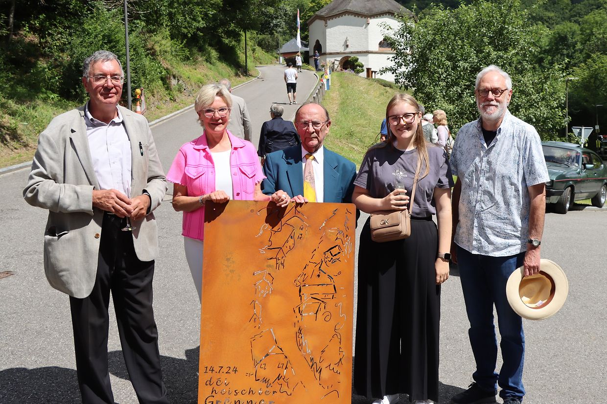 Anschließend nutzte die kleine Dorfgemeinde die Gelegenheit, um Martine Hansen, eine langjährige Anwohnerin im „Heischtergronn“, für ihre Nominierung zur Ministerin zu ehren. Jean Roilgen hielt eine sehr persönliche Ansprache im Namen der Einwohner des Heiderscheidergrundes. Auch Lucien Clesse, Vorsitzender der lokalen CSV-Sektion, sowie Bürgermeister Laurent Hilger ergriffen das Wort. Alle Redner waren sich einig: Martine Hansen ist eine engagierte Politikerin, die ihr Handwerk versteht und zudem bodenständig und volksnah ist. Der Stolz auf "ihre Martine" war im kleinen Dorf deutlich spürbar.