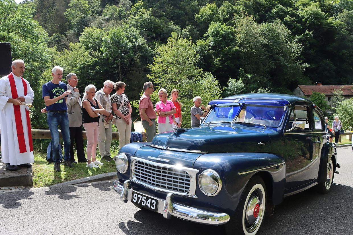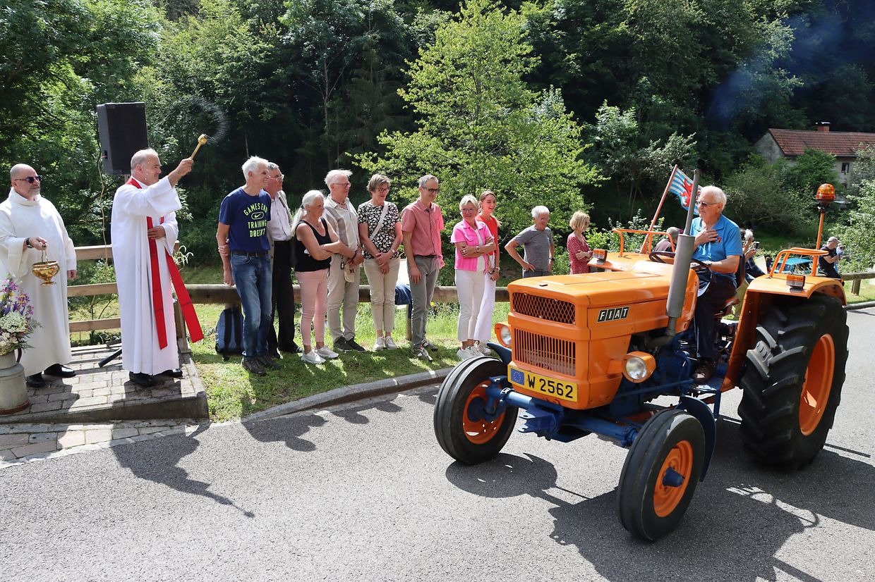 Nach dem Gottesdienst, den Pfarrer Marco Wehles bei bestem Wetter im Freien abhalten konnte, zog eine lange Prozession an ihm vorbei. Diese umfasste Pferde, motorisierte Fahrzeuge, Oldtimer-Traktoren, moderne landwirtschaftliche Maschinen sowie zeitgenössische und historische Autos und Motorräder, die alle den Segen erhielten.