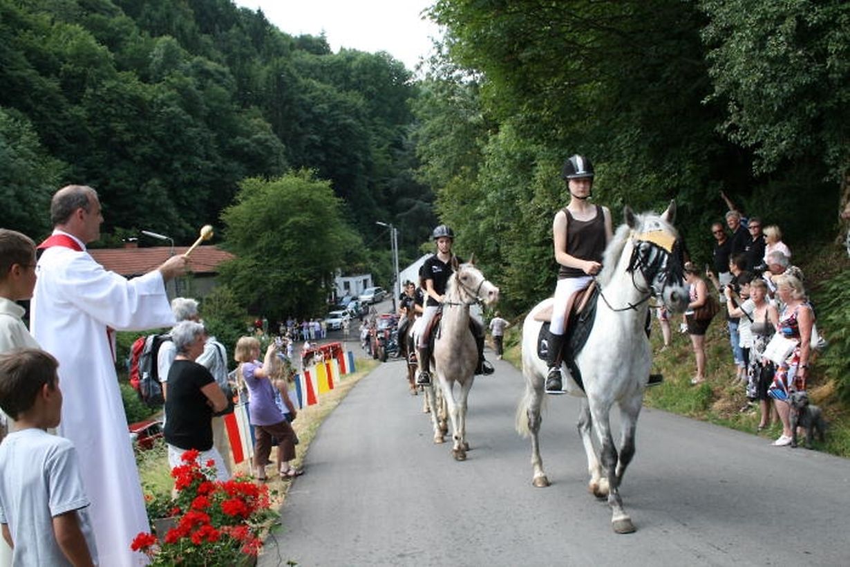 Am vergangenen Sonntag (11.Juli)hatten sich im Heiderscheidergrund erneut zahlreiche Gläubige eingefunden, um an der Tradition festzuhalten und ihre Pferde und Fahrzeuge unter den Segen des heiligen Celsus, der zudem zweiter Patron der Kapelle im Heiderscheidergrund verehrt wird, stellen zu lassen. Bei herrlichem Sommerwetter war es Pfarrer Marco Wehles vergönnt den feierlichen Gottesdienst, der von den „Frënn vum Heischtergonn“ gesanglich gestaltet und musikalisch von Luc Reff begleitet wurde, im Freien zu zelebrieren. Im Anschluss nahm Pfarrer Marco Wehles die Segnung der Pferde und der motorisierten Gefährte und Fahrräder vor. Zahlreiche Mütter ließen auch ihre Kinder segnen, während auch Hundehalter ihre treuen vierbeinigen Begleiter segnen ließen. Jeder Fahrer erhielt zudem einen Aufkleber mit dem schönen Spruch: „Fahre nicht schneller, als Dein Schutzengel fliegen kann“. Anschließend ergab sich die Gelegenheit bei einem kühlen „Patt“ die aktuellen Neuigkeiten auszutauschen oder ein „Gadget“ zu erstehen, das im Straßenverkehr schützen soll. Der Erlös ist für die einzigartige achteckige Kapelle, die stets für Besucher zugänglich ist. (TEXT/FOTO: NICOLE MILBERT)