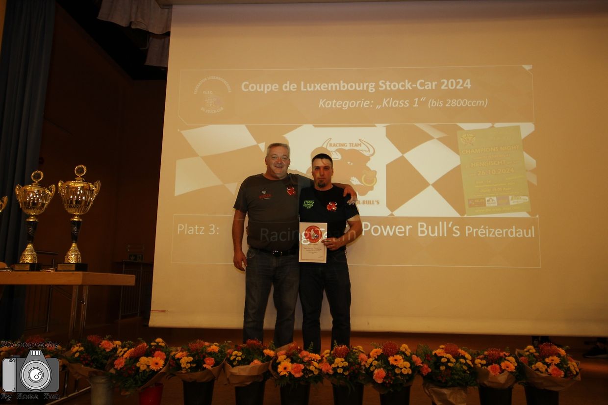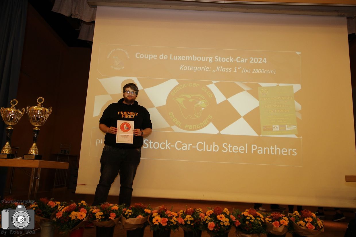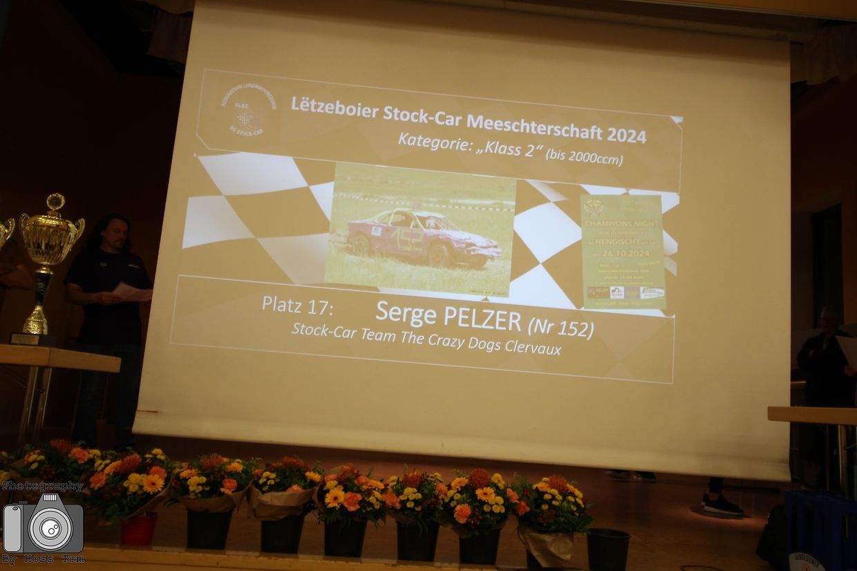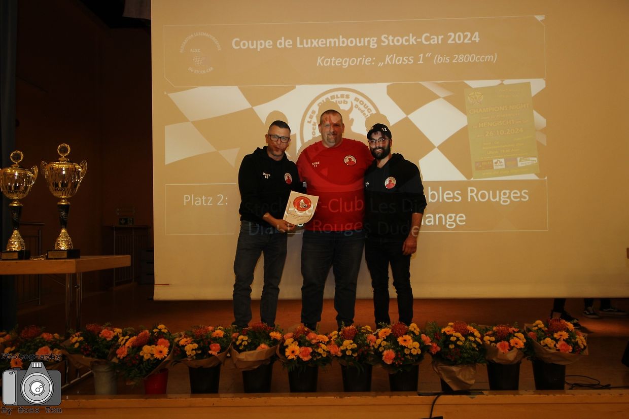 Insgesamt konnte ein toller und feierlicher Ablauf gewährt werden. Die Moderation des Abends oblag Joel Christnach (Mitglied des Stock-Car Team The Crazy Dogs Clervaux) welcher mit viel Leidenschaft und Einsatz durch den Abend führte. Etliche Ansprachen und Dankesreden wurden getätigt, unter anderem Juppy Mockel (Generalsekretär der F.L.S.C.) und Sven Frank (Vize-Präsident des Veranstalters stellvertretend). Nach einem bestens organisierten Essensangebot kam es anschliessend dann zur erwarteten Ehrung der einzelnen Piloten und Teams der Saison 2024.