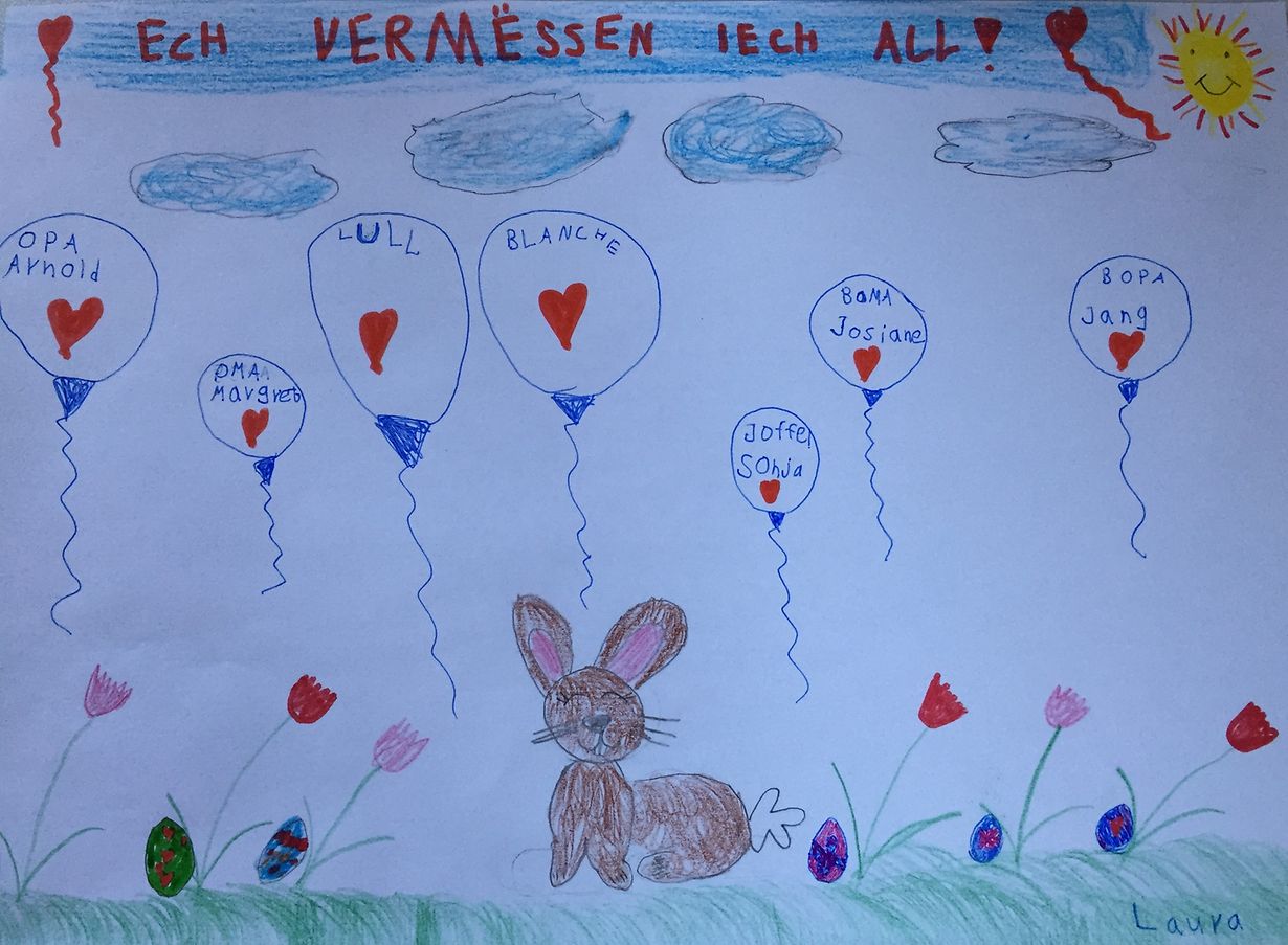 Heisdorf (Steinsel) E Bild vum Laura Hengel Laurence Hengel-Waltzing Veröffentlicht am Donnerstag, 2. April 2020 um 11:16 Heisdorf, Luxemburg E Bild vum Laura mam Ouschterhues Dieser Beitrag ist Teil einer mywort-Mission: Eine Zeichnung für die Großeltern Unpassenden Inhalt angeben