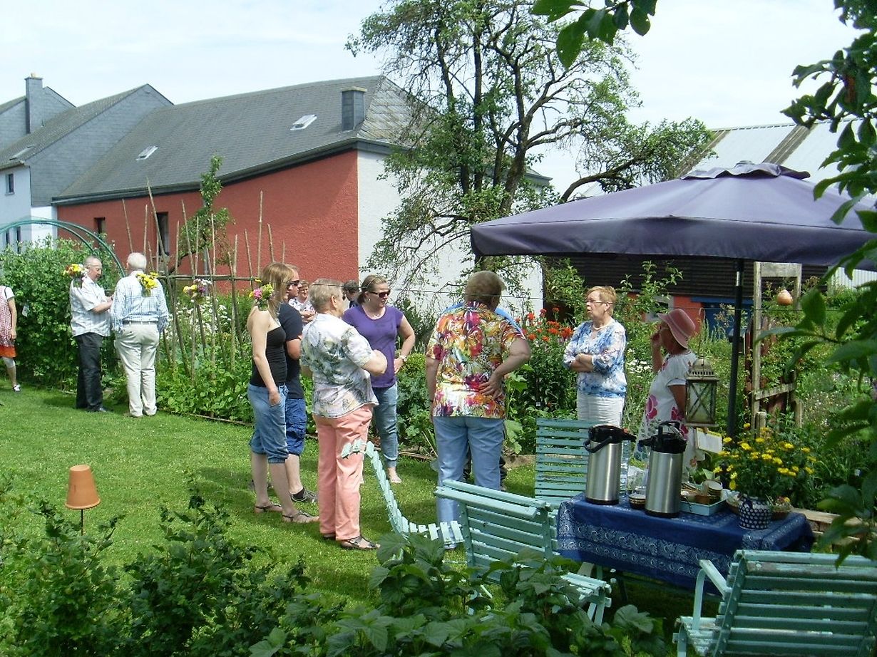 E Sonndeg, 29. Juni, war internationalen Dag vun der oppener Gaardepäertelchen. D'Madame Marie-Rose Simon-Frising hat sech gemeldt fir matzemaen. Also kumm hire Gaart mat op d'Lëst vun deenen 29 Gäert, déi interesséierte Gaardefrënn sech konnten ukucke goen. Dat Besonnescht un der Mme Simon hirem Gaart ass, datt do viru 4 Joer na nëmmen e gewéinlechen Pesch vun engem Bauerehaus mat e puer alen Uebstbeem war. Mat vill Léift huet si deen zu engem wonnerbaren Gaart ëmgestalt. Si huet d'Talent fir Ales mat Neiem ze verbannen a mat vill Kreativitéit zu Wierk ze goen. An deem Gaart gëtt net gesprëtzt an Dünger kënnt nëmmen an organischer Form zum Asaz. D'Madame Simon, eng leidenschaftlich Molerin, hat och hirer Biller ausgestalt an d'Schëlter mat de Nimm vun de Planzen waren mat vill Léift zum Détail künstlerisch gestalt.