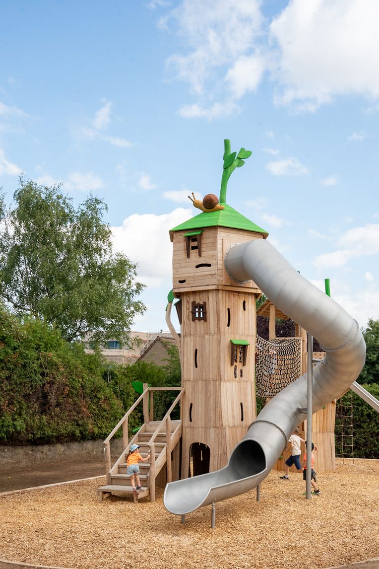 Rechtzäiteg virun der grousser Vakanz gouf zu Helleng no bei der Cité Bourbierg eng flott ëffentlech Spillplaz ageweit. Ronn 40 Joer no dem Amenagement vun dem Bourbierg an no dem ganz rezenten Bau vun enger ugrenzender Cité an der Schoulstrooss, esou wéi foussnoo vun der lokaler Crèche, koum den Bau vun dëser Spillplaz genau zum richtegen Moment. Nodeems d'Kanner ëmmer manner d'Niewestroossen fir ze Spillen kenne benotzen, ass d'Uleeën vun ofgegrenzten Spillplazen ëmsou méi wichteg, wou d'Kanner kenne an engem sécheren Ëmfeld an bei enger labberer Atmosphär sozial Aktivitéiten ausüben, egal wéi verschidden d'Kanner sinn.Da nei vun der Gemeng an ënner der Opsicht vun enger Architektin naturgetrei ugeluechten Spillplaz erméiglecht et den Kanner hiren Beweegungs-, Entdeckungs-, an Fuerschungsdrang, onofhängeg vun hirem kierperlechen Zoustand ze pfleegen an auszebauen. Hei kenne d'Kanner bei Spill a Spaass hier kierperlech Koordinatioun, Kraaft an Flexibilitéit weider entwéckelen an gin esou op d'Gesellschaft virbereet.D'Spillplaz, déi souwuel vun der Schoulstrooss als ewéi vum Bourbierg zougänglech ass, gouf mat engem Urwald änlechen Kloterdeel versinn, den mat Déierefiguren garnéiert ass. Eng Picknick Plaz, vill Beem an Planzen esou ewéi eng anstänneg Zuel u Bänken lueden d'Elteren zum Ausrouen an.Vielleicht kënnt zu engem spéideren Zäitpunkt nach een klengen Ënnerdaach derzou, wou d'Elteren an d'Kanner kenne Bicher an Spiller déi si net méi benotzen astellen fir dass si vun aneren Elteren wärend hirem Openthalt kenne gelies ginn.