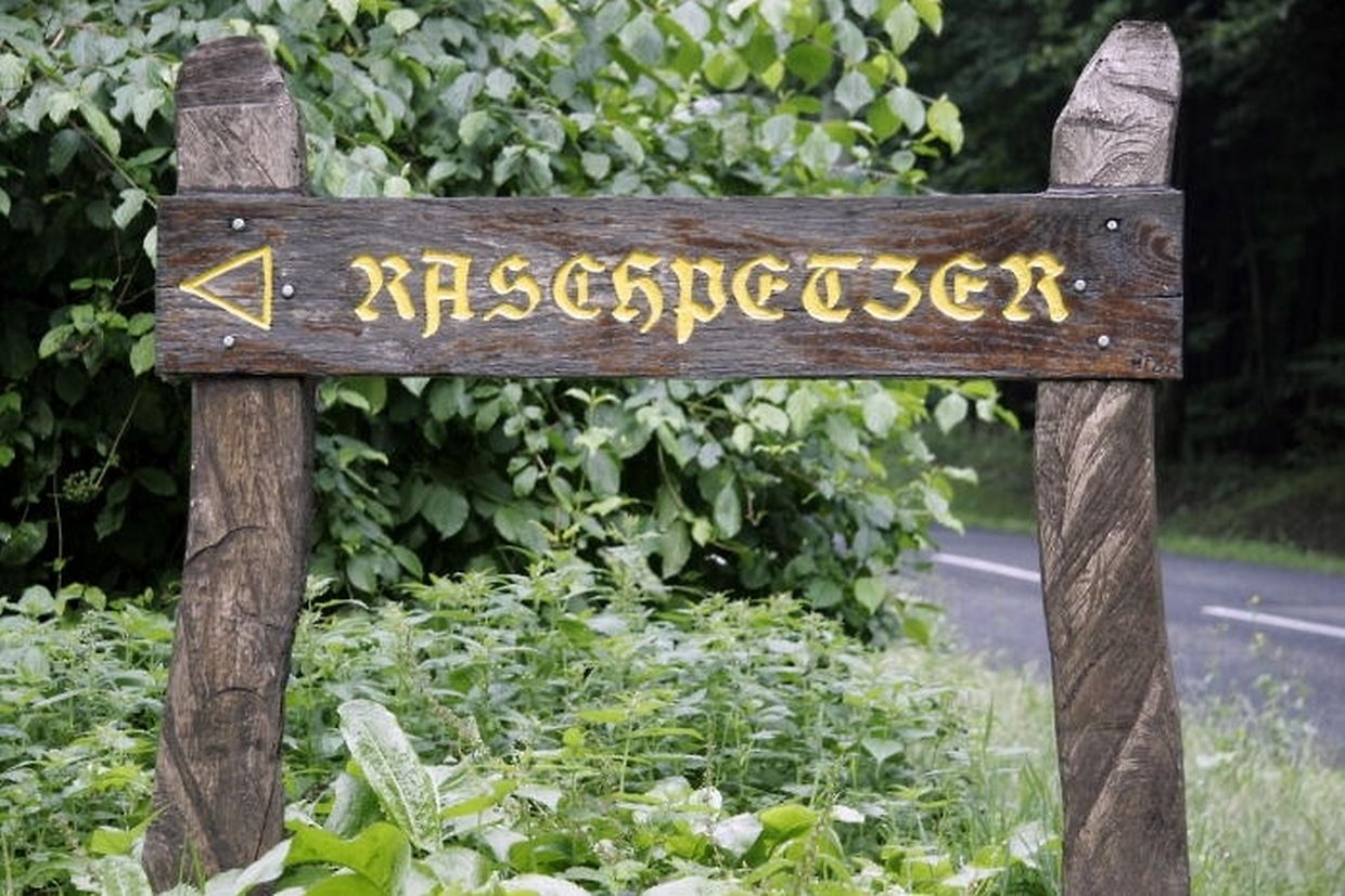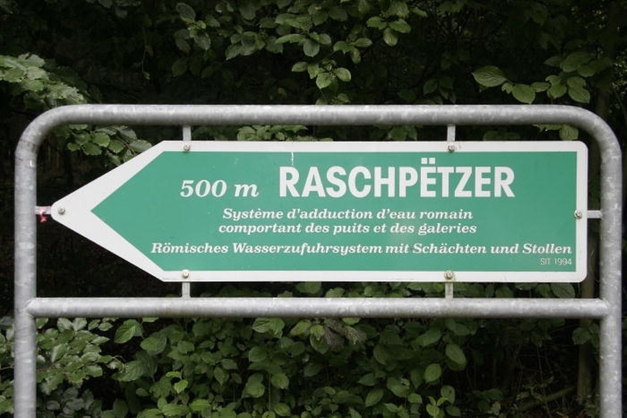 D’Raschpëtzer entstoungen am 2. Jh. tëscht Sandsteen a Miergelschichten op Pëtschent um Plateau am Bësch. Dat déifste vun de véier sougenannte ‘Wichtelcheslächer’ ass 37 Meter gemooss ginn. Géing een dra falen, kéim en dem Nikela Gonner no net wäit vun der fréirer Steeseler Millen eraus! 1320 war d‘ „mairie de Steinzele“ ernimmt mat hirer Gidder zu ‘Helmsingen‘, Luerenzweiler an Eselbuer.