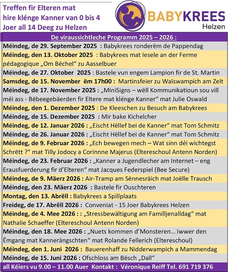 Die Treffen finden am Montagmorgen in Hachiville statt.Weitere Informationen und Anmeldung unter Tel. 691 719 376.
