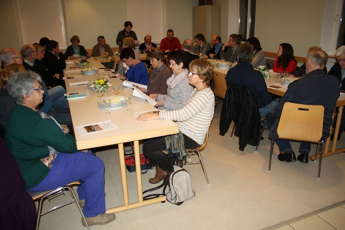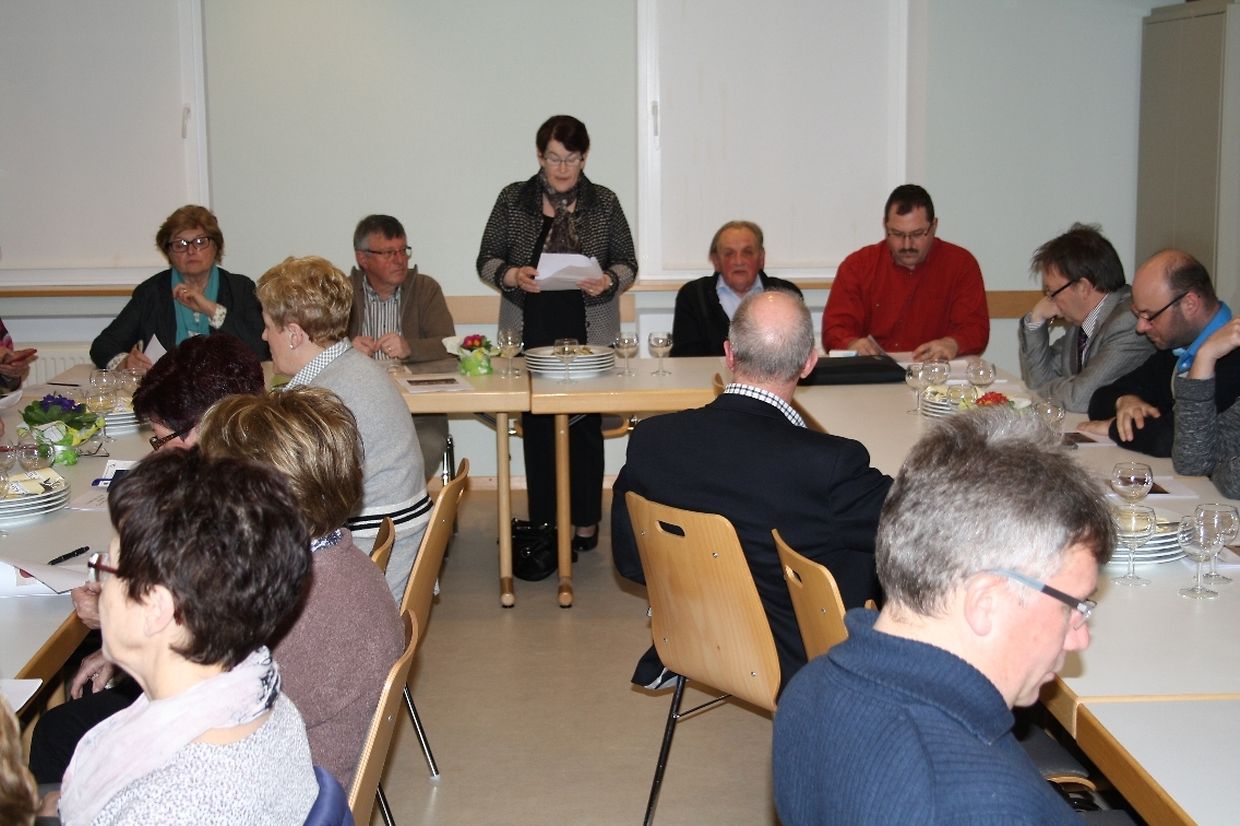 In diesem Jahre war es die Präsidentin des Gesangverein Hemstal Tessy Hau-Thomé, welche die anwesenden Mitglieder beider Vereine begrüßte, sich bei Ihnen bedankte für die disziplinierte Teilnahme an den zahlreichen Aktivitäten und die ausgezeichnete Atmosphäre innerhalb der Vereine lobte. In Anwesenheit von Pfarrer Hw. Carlo Morbach und der Pfarrassistentin Frau Josiane Mirkes begrüßte Sie ebenfalls ihre Sängerkolleginnen- und Kollegen aus Biwer, bedankte sich bei den anwesenden Mitgliedern des Schöffen- und Gemeinderates der Gemeinde Bech für ihre Unterstützung, sie entschuldigte des Weiteren den abwesenden Bürgermeister Camille Kohn.