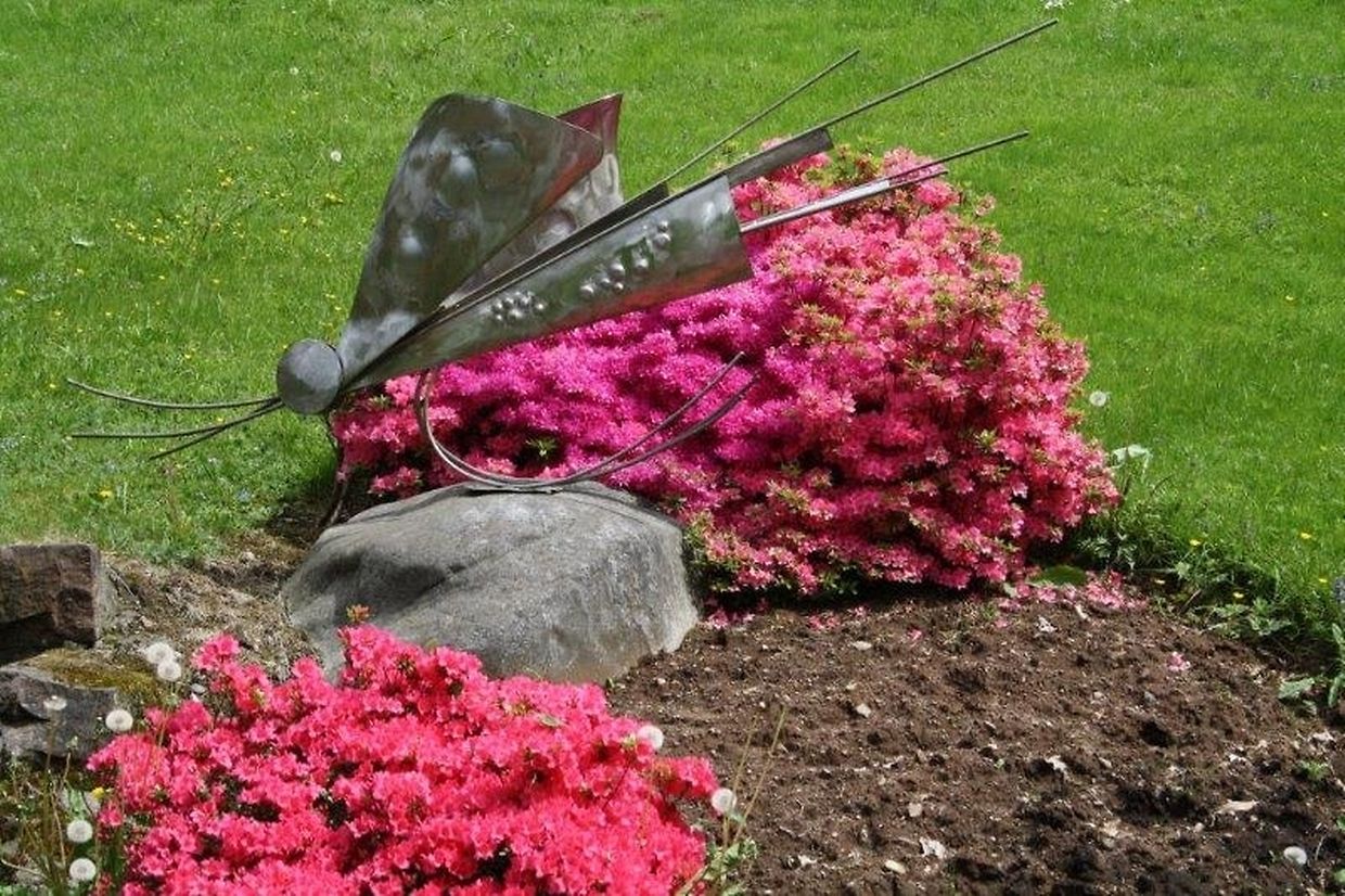 1.Die Figur der Libelle soll auf das am Eingang der Ortschaft sich gebildete Feuchtgebiet mit seinem Röhricht hinweisen.