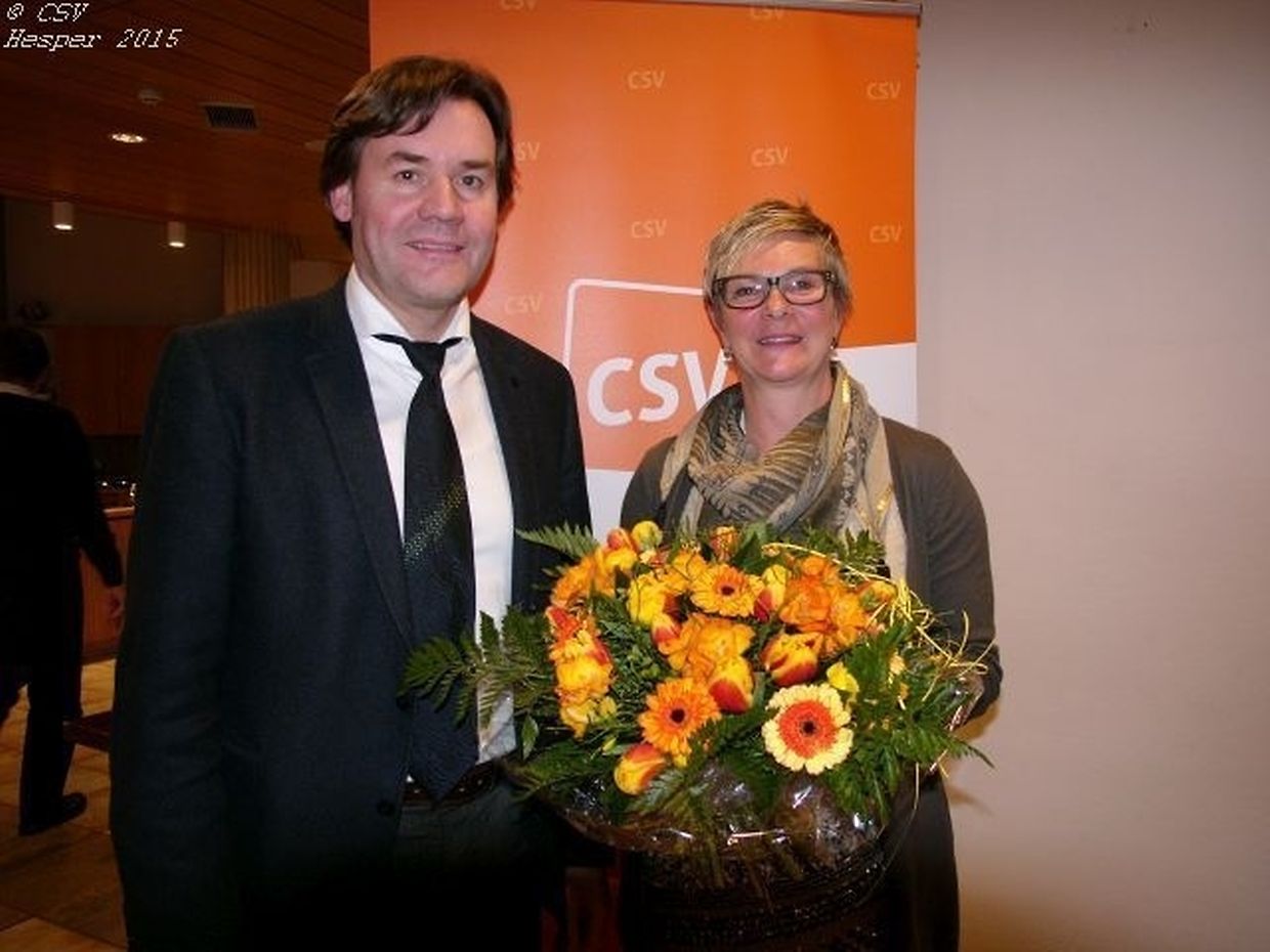 Sekretärin Yolande THOMA-KRAEMER sprach von einem arbeitsintensiven Jahr. Gesellschaftliche Veranstaltungen wie Neujahrempfang, Gebake Fësch und Gromperefest sind willkommene Gelegenheiten um Sympathisanten und Freunde der CSV zusammenzuführen.